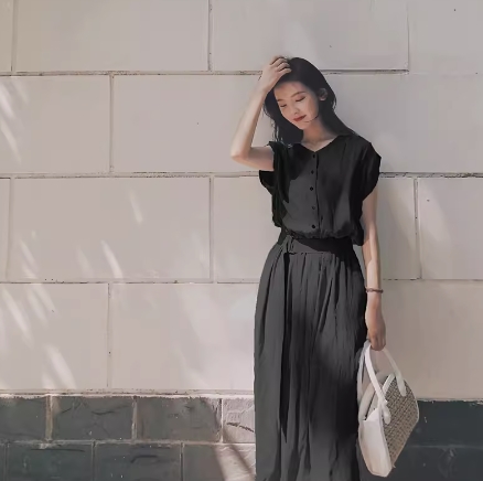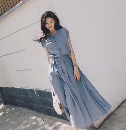 ワンピース シャツワンピース ワンピドレス 膝下 ロング ロング丈 フレンチスリーブ 襟なし フレア Aライン ウエストベルト ハイウエスト 前開き ポリエステル かわいい 大人可愛い シンプル カジュアル 大人 おしゃれ お洒落 レトロ アジアン エスニック ラフ 無地 夏 10代