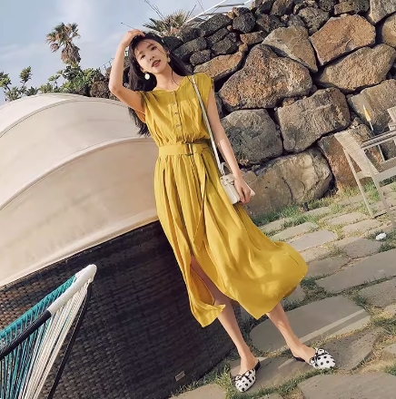 ワンピース シャツワンピース ワンピドレス 膝下 ロング ロング丈 フレンチスリーブ 襟なし フレア Aライン ウエストベルト ハイウエスト 前開き ポリエステル かわいい 大人可愛い シンプル カジュアル 大人 おしゃれ お洒落 レトロ アジアン エスニック ラフ 無地 夏 10代 20代 レディース 女性用 通勤 デート お出かけ 公園デビュー 女子会 休日 リゾート 旅行 海 ホテル ガーデン レストラン 普段使い 楽ちん サイズ S M L XL 大きいサイズ 3色展開 ブルー イエロー ブラック