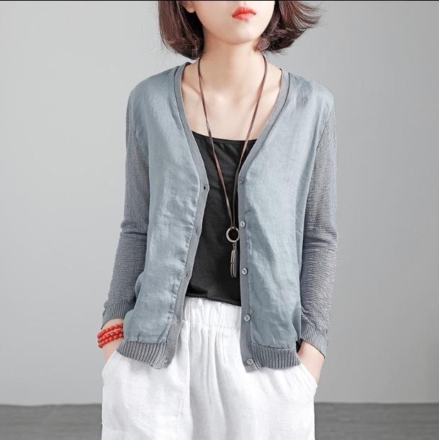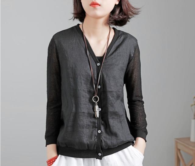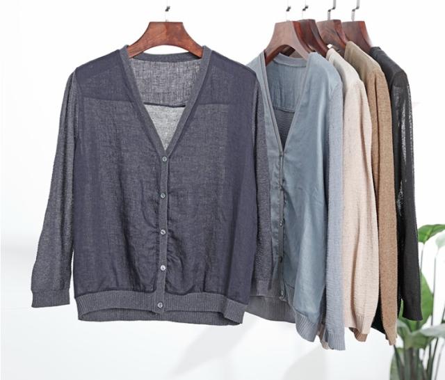 ダークな色味のシンプルカーディガンです。