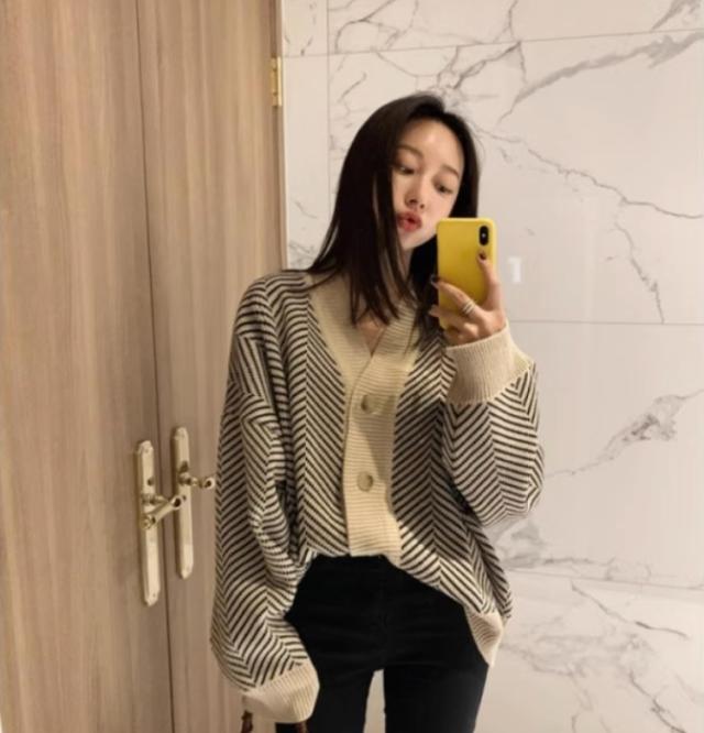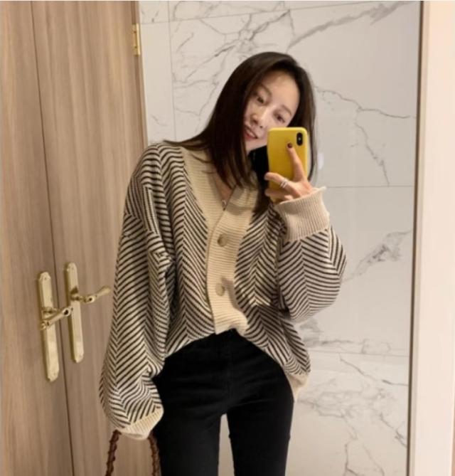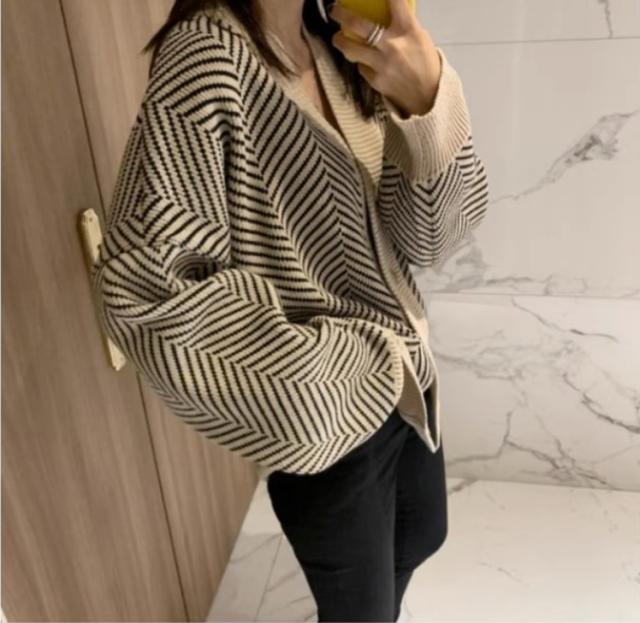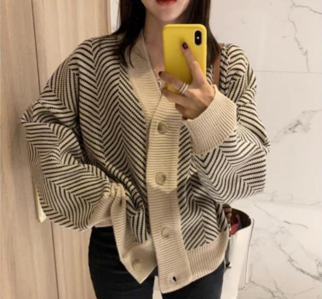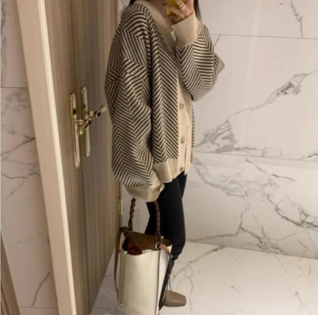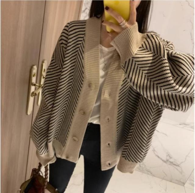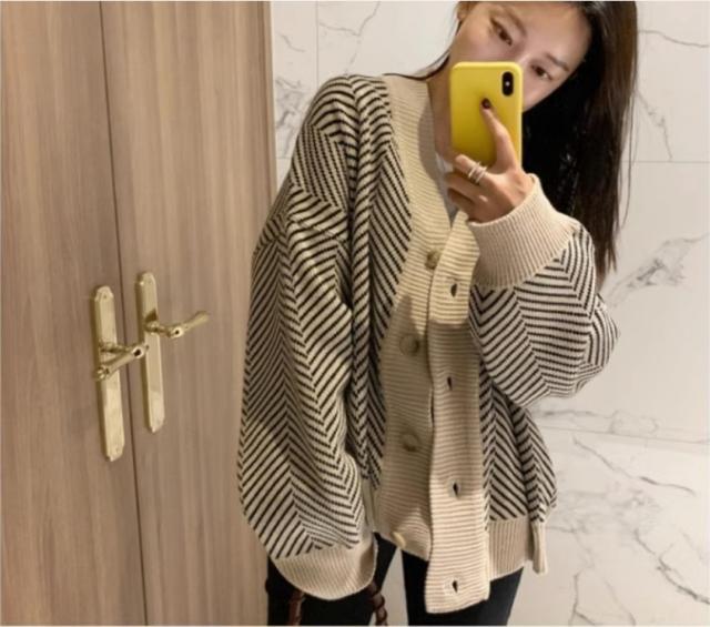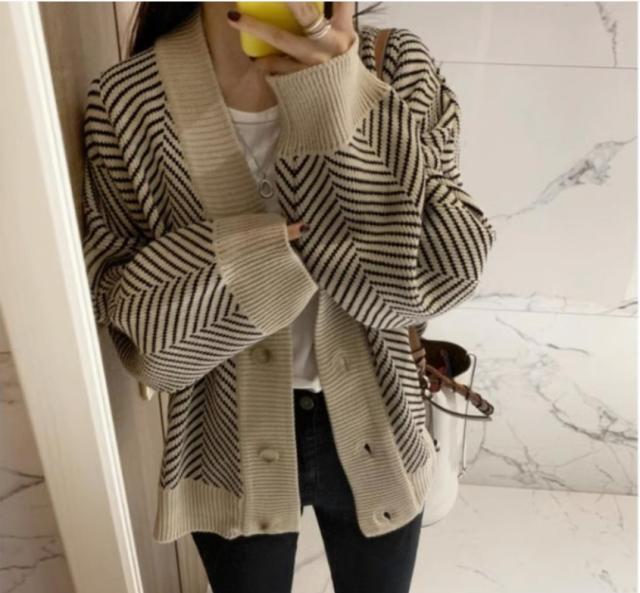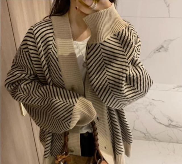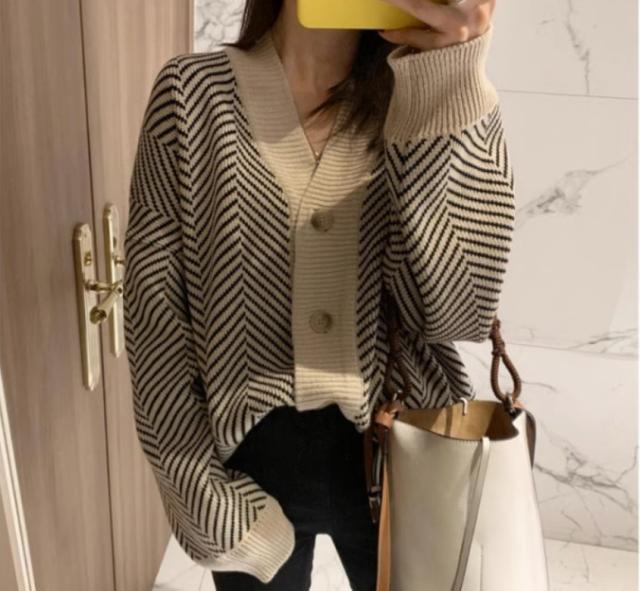 アウター カーディガン 上着 長袖 Vネック 襟なし 前開き かわいい 大人可愛い シンプル カジュアル 大人 おしゃれ お洒落 かっこいい 大人可愛い 大人女子 こなれ感 ラフ 個性的 クール 柄 ボーダー 秋 10代 20代 30代 レディース 女性用 オフィス ビジネス OL 通勤 学生 通学 デート お出かけ 女子会 お泊まり 休日 旅行 高原 ホテル ガーデン デート 着回し 普段使い 重ね着 韓国 韓国系 オルチャン ファッション コーデ スタイル 暖かい 防寒 モテ