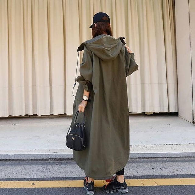 アウター コート スプリングコート モッズコート フード付き ロング丈 長袖 Vネック 前開きジッパー ウエストマーク ハイウエスト 体形カバー きれいめ シンプル カジュアル 大人 上品 おしゃれ こなれ感 ラフ マニッシュ スポーティー クール モード系 モダン 抜け感 無地 春 秋 10代 20代 30代 40代 50代 60代 OL 通勤 学生 デート お出かけ 休日 散歩ショッピング 着回し 普段使い トレンド サイズ S M L XL カラー アーミーグリーン ブラック