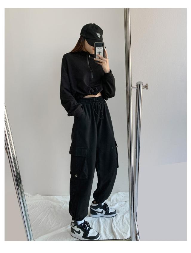 トップス ジッパートップ ジャケット 上着 ハイネック セーター ショート丈 袖あり 長袖 スリーブ 襟あり ルーズフィット ストレート ワイド ストリート ジャージ スポーツ 前開き メンズライク かわいい 大人可愛い 部屋着 シンプル カジュアル おしゃれ レトロ 大人女子