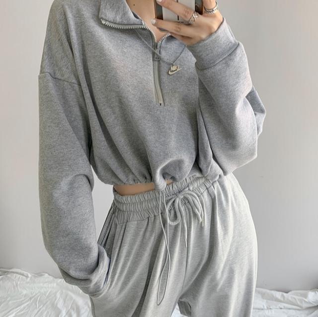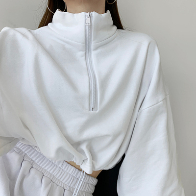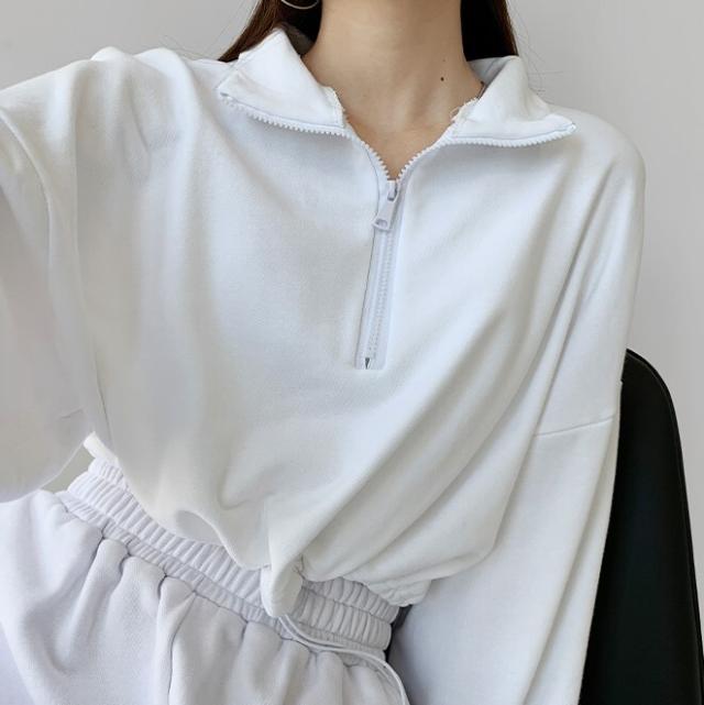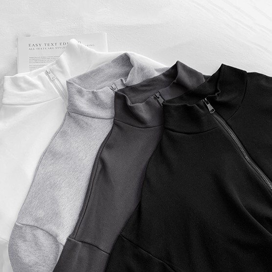トップス ジッパートップ ジャケット 上着 ハイネック セーター ショート丈 袖あり 長袖 スリーブ 襟あり ルーズフィット ストレート ワイド ストリート ジャージ スポーツ 前開き メンズライク かわいい 大人可愛い 部屋着 シンプル カジュアル おしゃれ レトロ 大人女子 こなれ感 かっこいい 無地 春 秋 10代 20代 30代 40代 レディース 女子用 ショッピング 散歩 公園 オルチャンファッション カジュアルスタイル サイズS M カラー ホワイト ブラック グレー ブルー