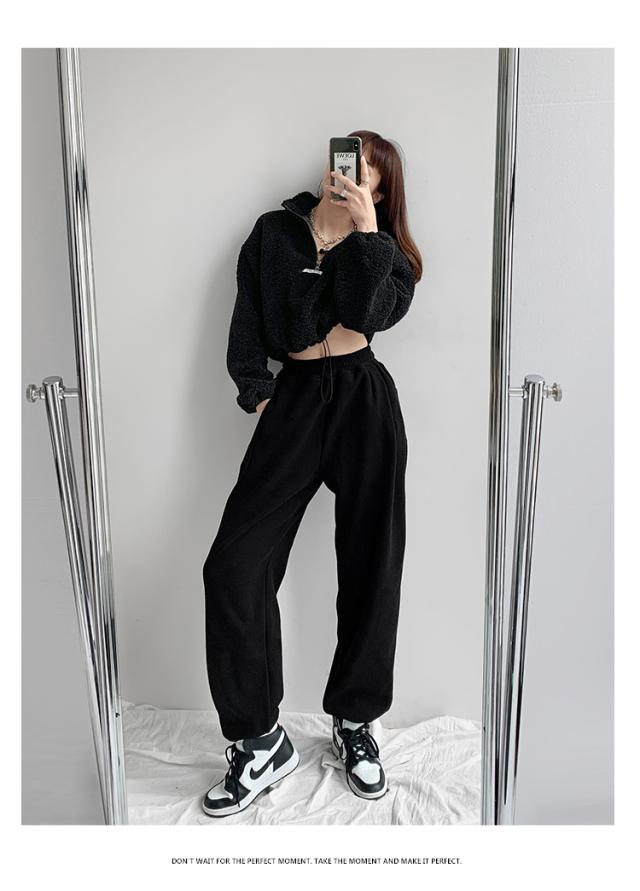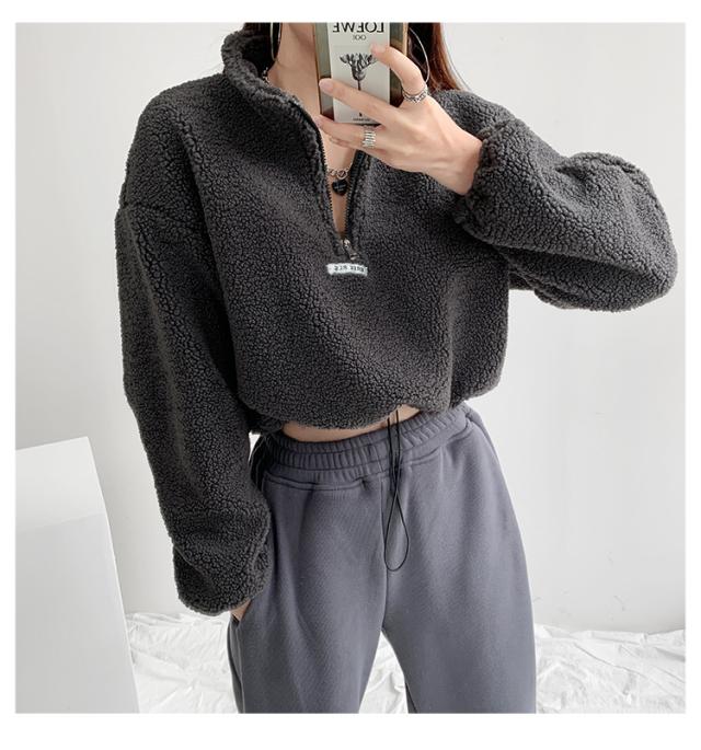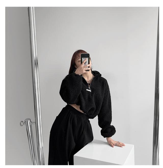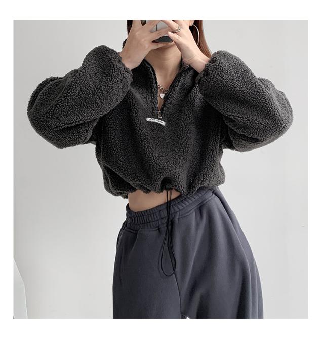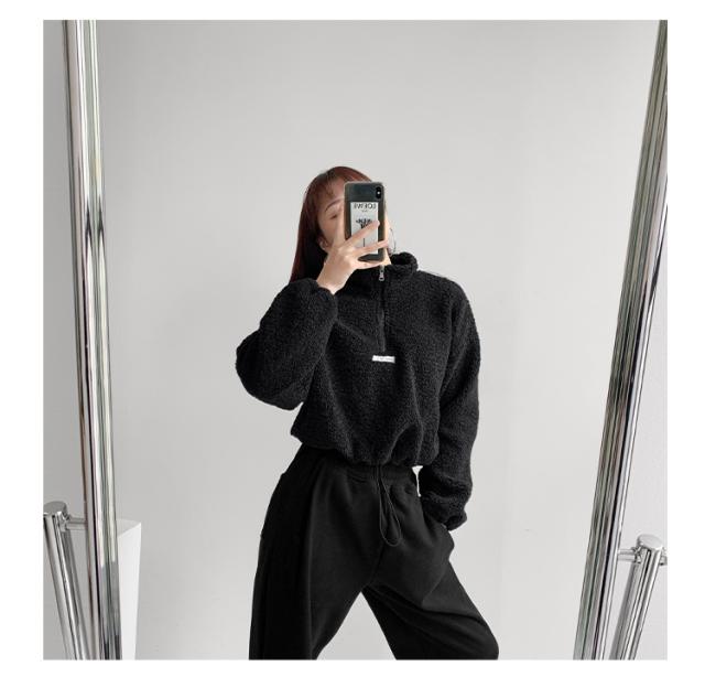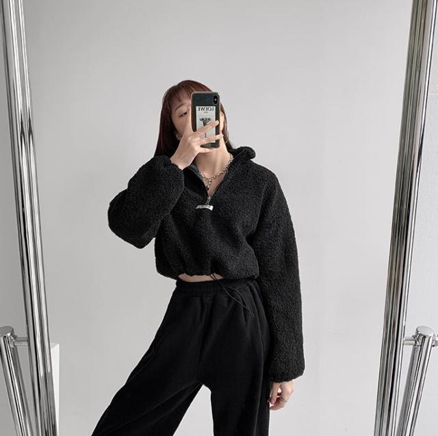 トップス ジッパートップ フリースジャケット あたたかい 上着 ハイネック セーター ショート丈 袖あり 長袖 スリーブ 襟あり ルーズフィット 裾絞り ストリート ジャージ スポーツ 前開き メンズライク かわいい 大人可愛い 部屋着 シンプル カジュアル おしゃれ レトロ 大人女子 こなれ感 かっこいい 無地 冬 秋 10代 20代 30代 40代 レディース 女子用 ショッピング 散歩 公園 ルームウエア オルチャンファッション カジュアルスタイル サイズ S M カラー ブラック グレー