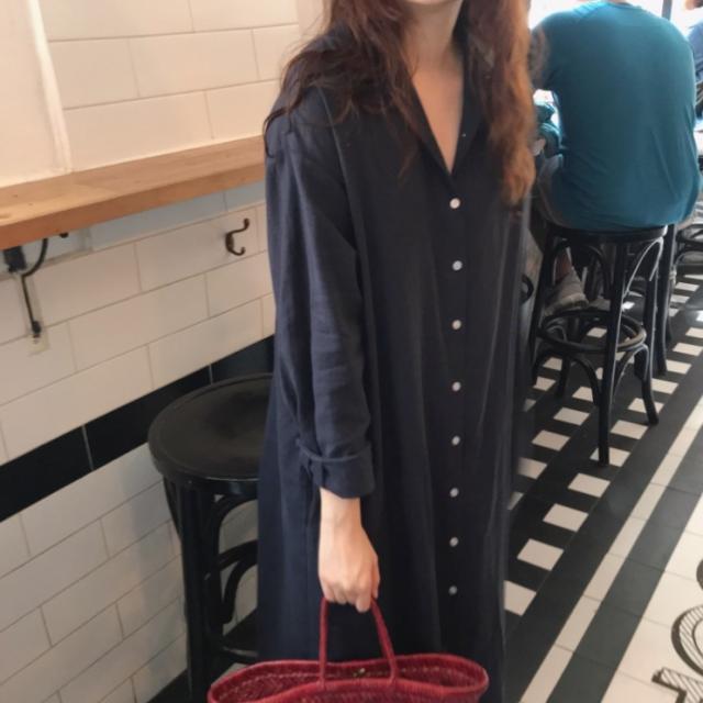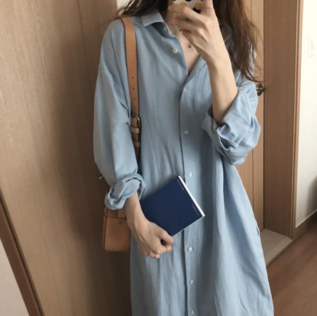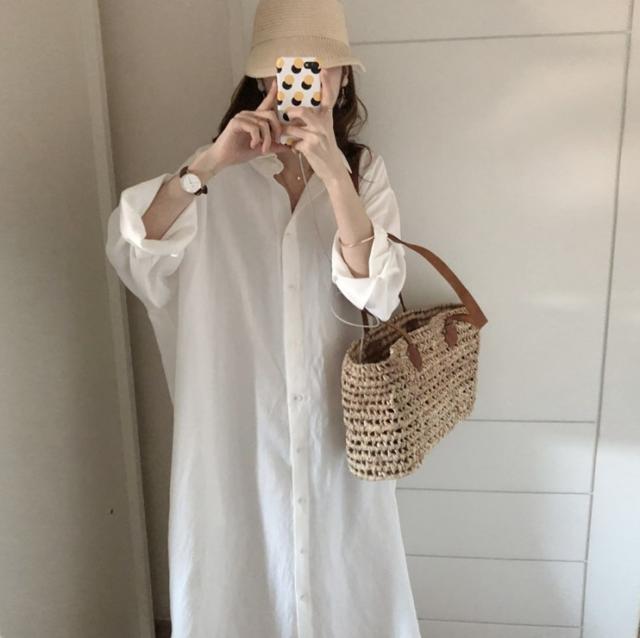 春や秋の時期に、さらっと着られるシャツワンピース。