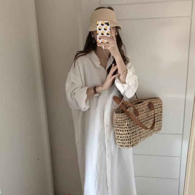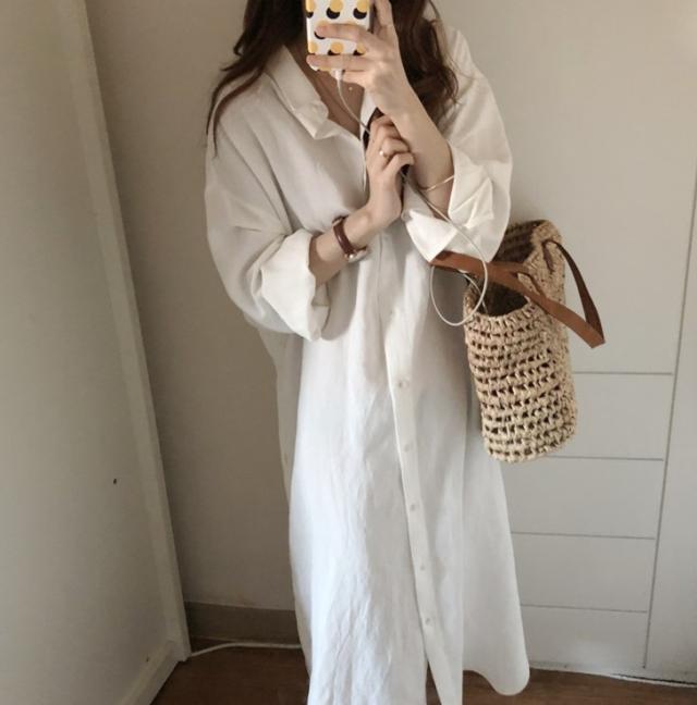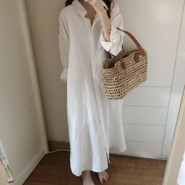 ワンピース シャツワンピース ワンピドレス ロング ロング丈 袖あり 長袖 襟付き ストレート Iライン サイドスリット 前開き 綿 かわいい 大人可愛い シンプル おしゃれ レトロ アジアン エスニック エキゾチック ラフ ルーズ 無地 春 秋 20代 30代 レディース 女性用 通勤 デート お出かけ 公園デビュー 女子会 休日 旅行 ホテル ガーデン レストラン 着回し 普段使い 楽ちん サイズ S M L XL 色展開 白 ホワイト ベージュ ピンク 水色 ネイビー カラバリ ライトブルー