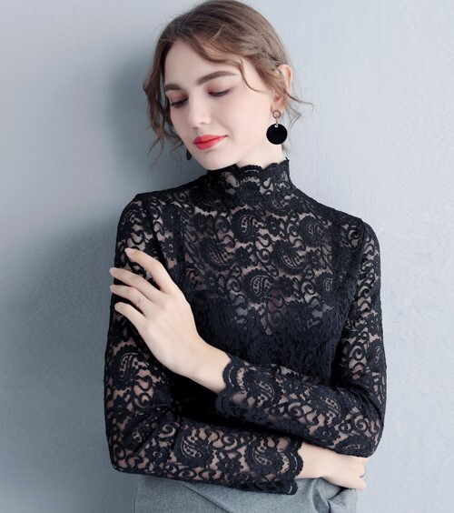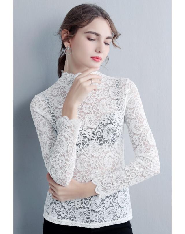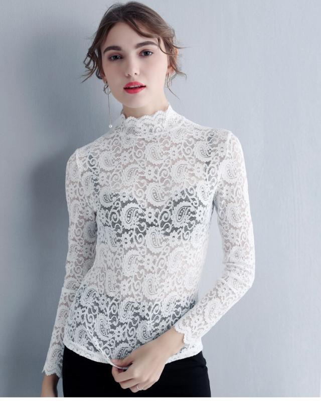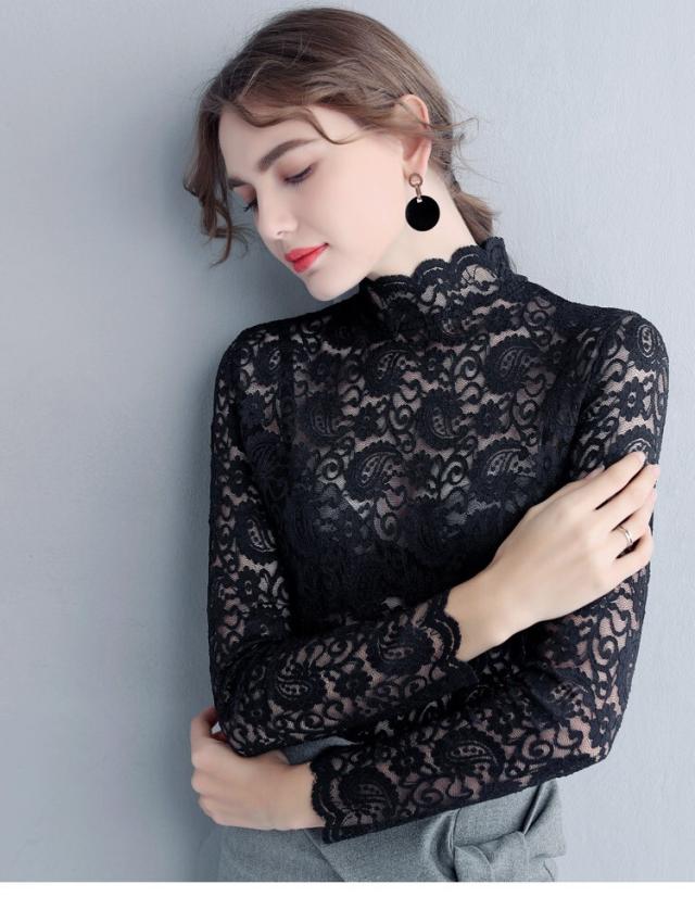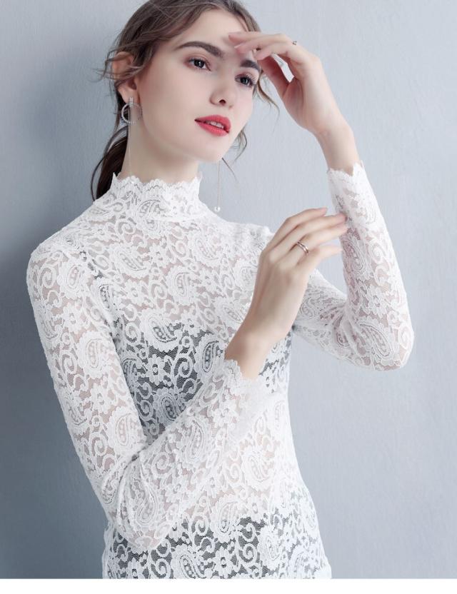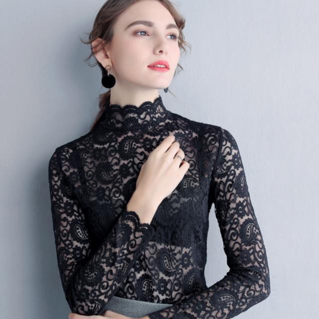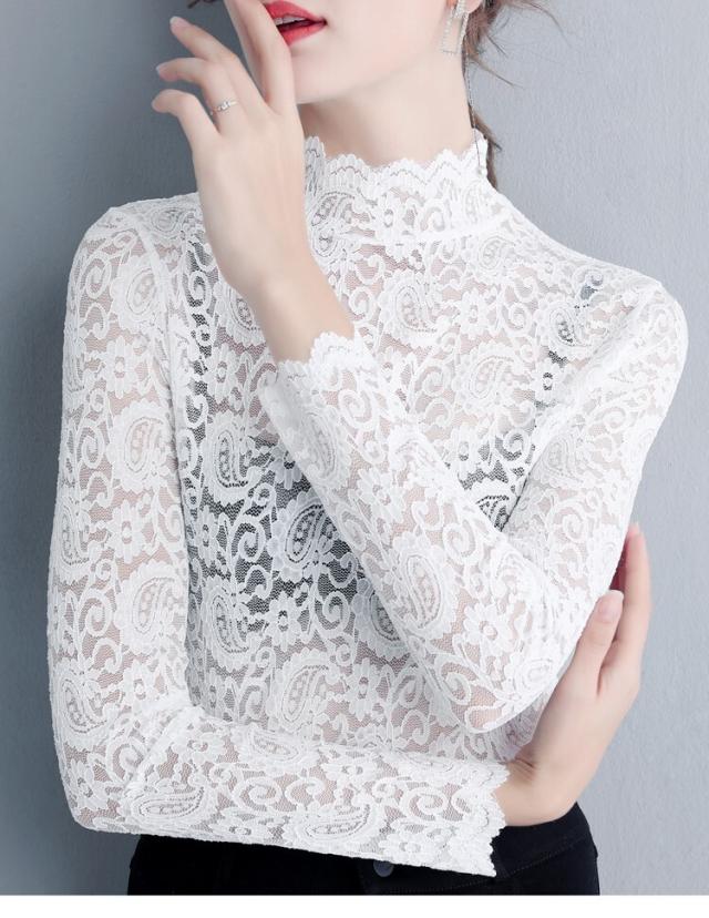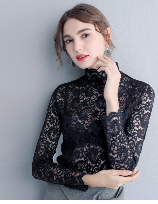トップス ブラウス レーストップス 袖あり 長袖 ハイネック レース 透け感 かわいい 大人可愛い きれいめ シンプル 大人 上品 おしゃれ 大人女子 こなれ感 ラブリー キュート ガーリー モード系 エレガント モダン 主役級 存在感 フォーマル 無地 春 秋 冬 入学式 入園式