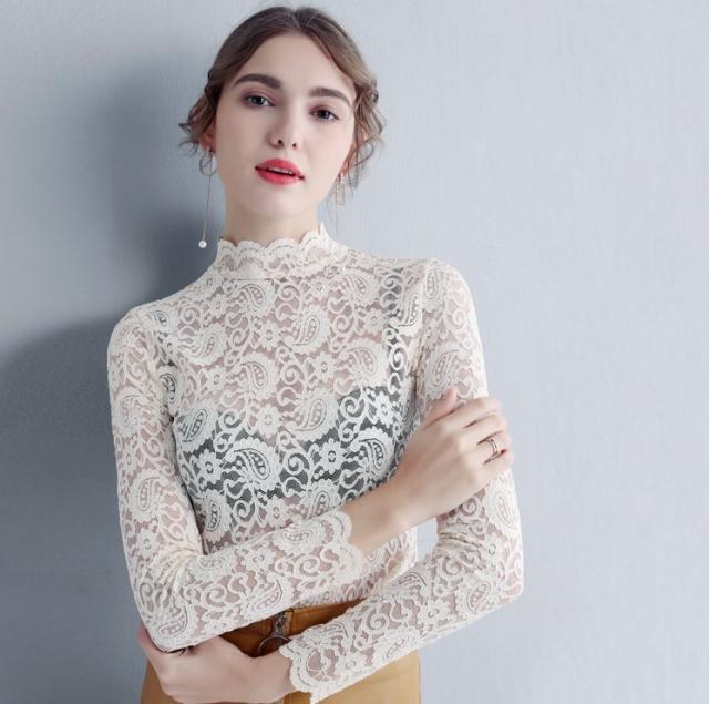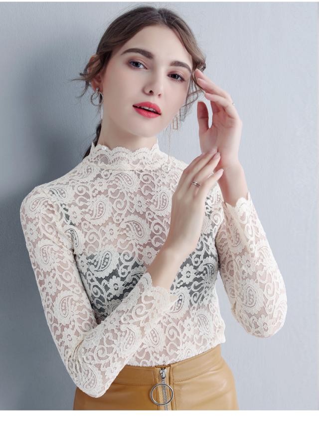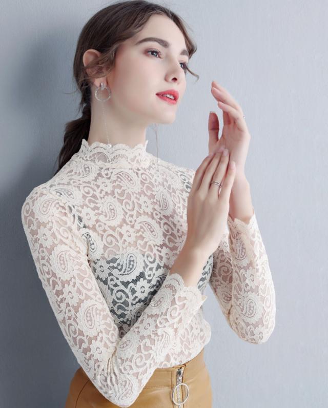 トップス ブラウス レーストップス 袖あり 長袖 ハイネック レース 透け感 かわいい 大人可愛い きれいめ シンプル 大人 上品 おしゃれ 大人女子 こなれ感 ラブリー キュート ガーリー モード系 エレガント モダン 主役級 存在感 フォーマル 無地 春 秋 冬 入学式 入園式 卒業式 卒園式 10代 20代 30代 40代 50代 60代 レディース OL 通勤 学生 通学 デート お出かけ 休日 着回し 普段使い サイズ S M L XL 2XL カラー アプリコット ブラック ホワイト