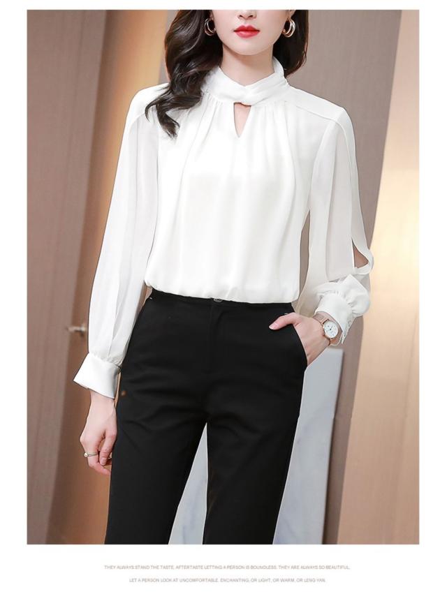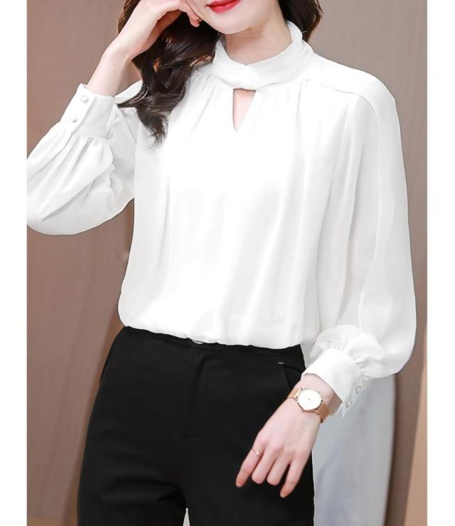 トップス ブラウス シフォンシャツ 長袖 ハイネック スタンドカラー ドレープ とろみ感 かわいい 大人可愛い 普段使い 着回し きれいめ エレガント 上品 おしゃれ 大人女子 こなれ感 ラブリー キュート モード系 モダン フェミニン フォーマル 無地 春 秋 冬 10代 20代 30代 40代 50代 レディース オフィス ビジネス OL 通勤 デート イベント 女子会 お出かけ ショッピング 休日 パーティー 着回し 普段使い サイズ M L XL 2XL 3XL カラー ホワイト