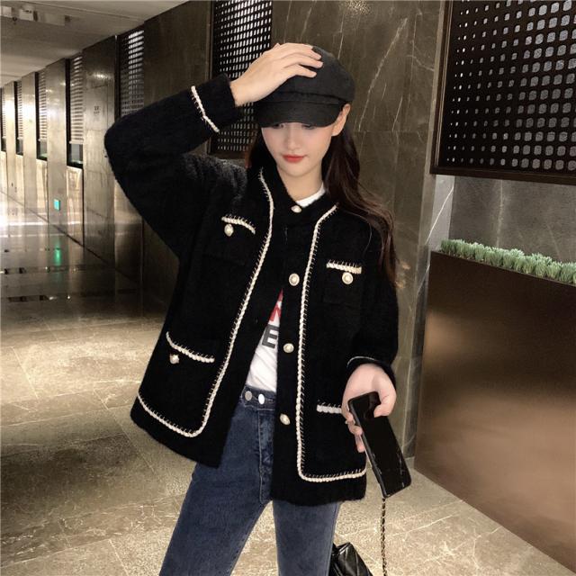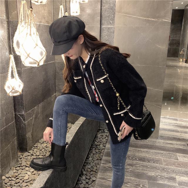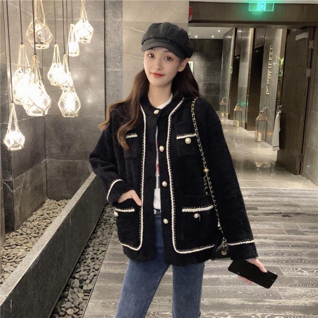 ノーカラー ツイード風 シャギー ジャケット アウター 袖あり 長袖 萌袖 Uネック クルーネック 襟なし もこもこ 前開き パイピング パール かわいい 大人可愛い きれいめ シンプル カジュアル 大人 上品 おしゃれ 大人女子 こなれ感 ラブリー キュート クール モード系 エレガント モダン 主役級 存在感 無地 秋 冬 10代 20代 30代 40代 50代 60代 オフィス ビジネス OL 通勤 学生 通学 デート お出かけ 女子会 休日 着回し 普段使い モテ インスタ映え ブラック ホワイト