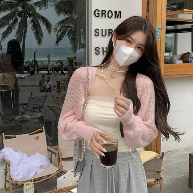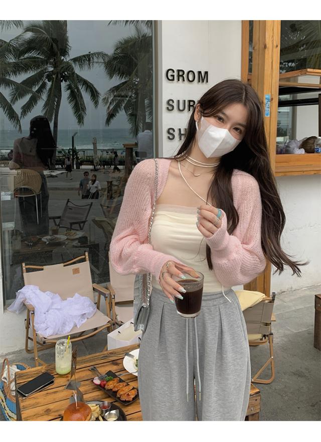 トップス 2点セット ツーピース 日焼け防止 カーディガン チューブトップ 透かし編み ニット アンサンブル ショート丈 袖あり 長袖 ドロップショルダー ルーズフィット 前開き 編み込み 透け感 かわいい 大人可愛い きれいめ シンプル カジュアル 大人 上品 おしゃれ こなれ感 ラフ ラブリー キュート ガーリー 主役級 存在感 春 夏 秋 10代 20代 30代 40代 学生 OL デート お出かけ 休日 ショッピング 着回し 普段使い 重ね着 モテ ワンサイズ カラー ホワイト ピンク