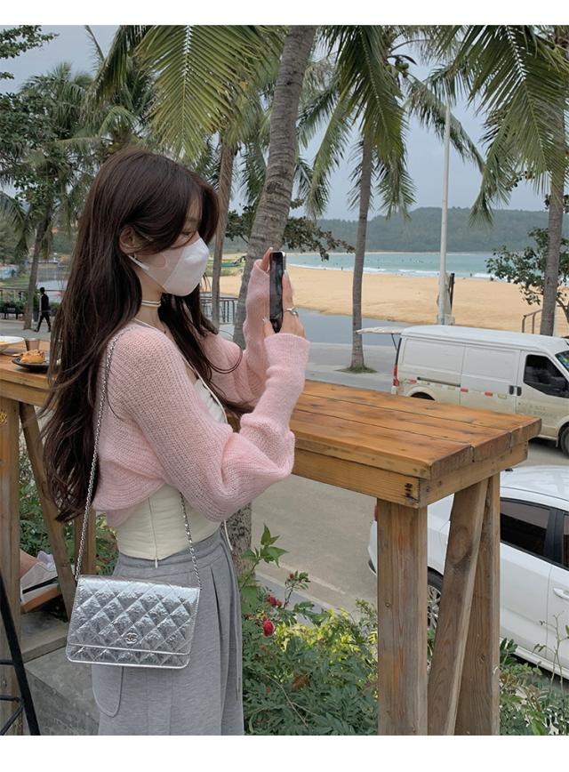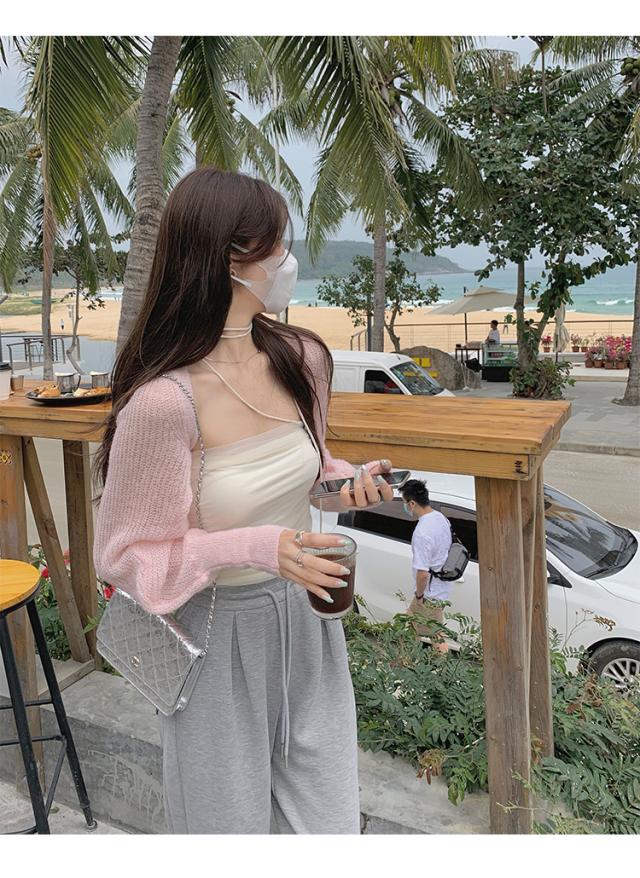 それぞれ単品でも使える、白チューブトップとカーディガンの2点セット。