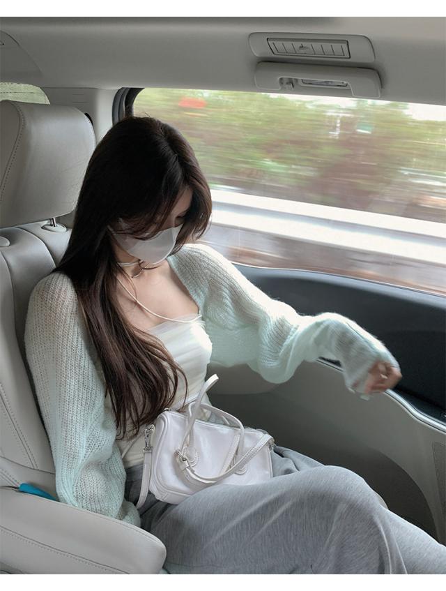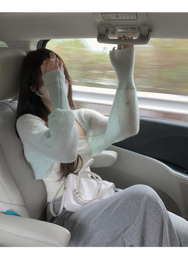 トップス 2点セット ツーピース 日焼け防止 カーディガン チューブトップ 透かし編み ニット アンサンブル ショート丈 袖あり 長袖 ドロップショルダー ルーズフィット 前開き 編み込み 透け感 かわいい 大人可愛い きれいめ シンプル カジュアル 大人 上品 おしゃれ こなれ感