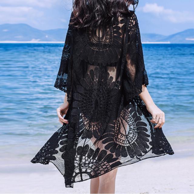 レースカーディガン トップス カーディガン ミディアム丈 袖あり 7分袖 レース 刺繍 タッセル かわいい 大人可愛い きれいめ シンプル カジュアル 大人 上品 おしゃれ かっこいい レトロ アジアン 大人女子 こなれ感 日焼け防止 UV対策 セクシー エレガント 抜け感 夏 10代