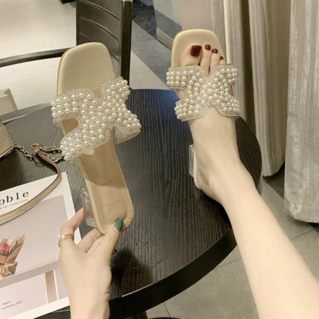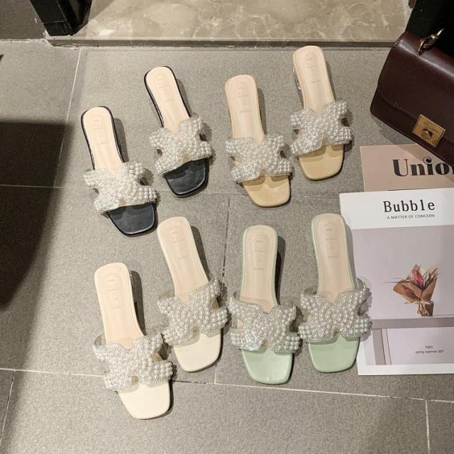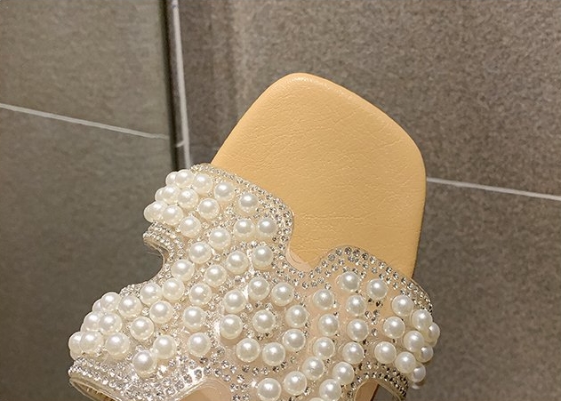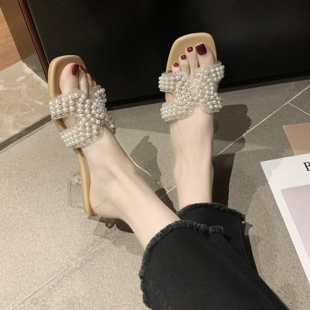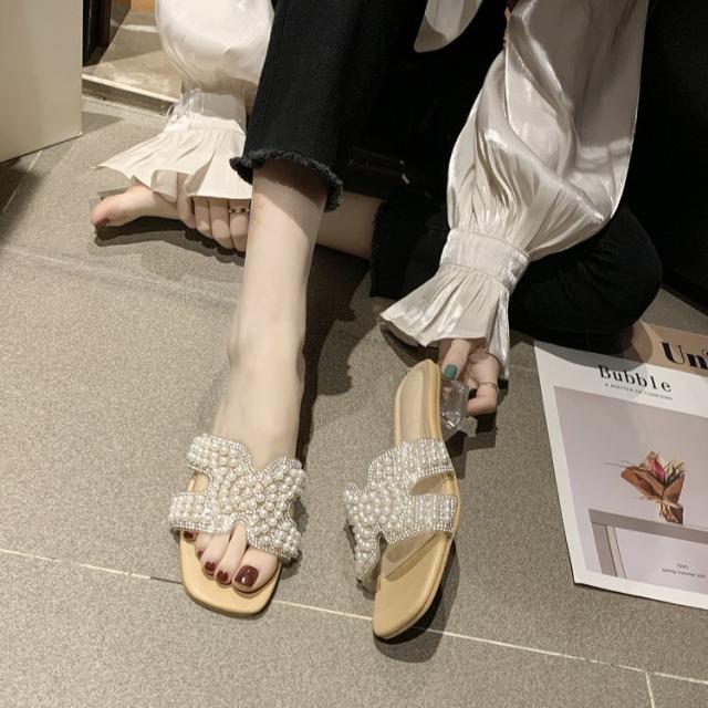 パールがポイントのつっかけサンダル。