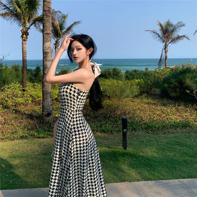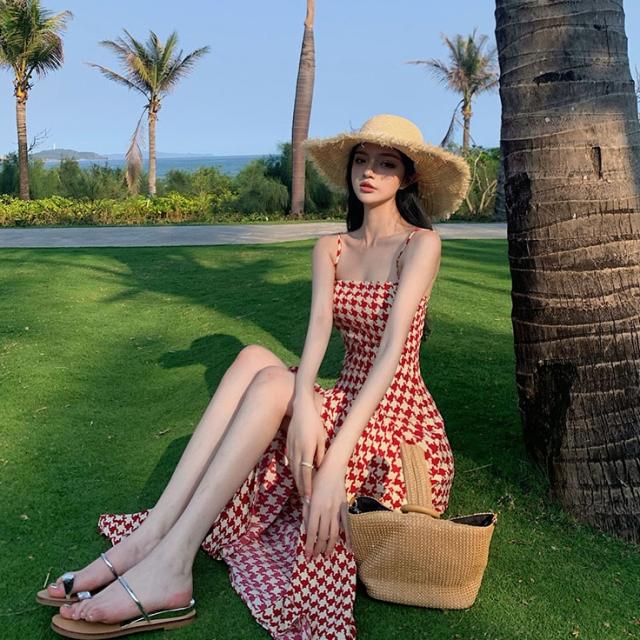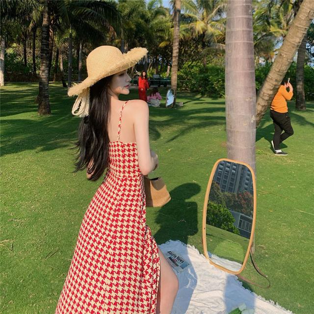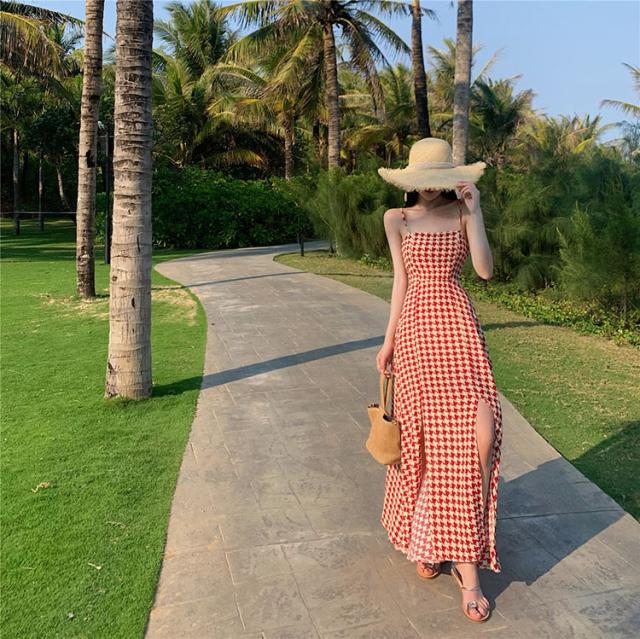 ワンピース ワンピドレス 膝下 ロング丈 袖なし ノースリーブ オフショルダー 襟なし セミフレア Aライン スリット サイドスリット ハイウエスト かわいい 大人可愛い シンプル 大人 おしゃれ レトロ アジアン エスニック エキゾチック 大人女子 ラフ セクシー 存在感 柄 千鳥格子 夏 秋 10代 20代 レディース 女性用 デート お出かけ 公園デビュー 女子会 休日 イベント リゾート 旅行 海 プール ガーデン レストラン 普段使い モテ サイズ S M L XL 色展開 ブラック レッド