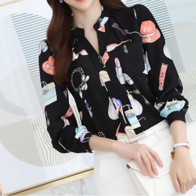 プリント とろみ ブラウス トップス シャツ 袖あり 長袖 パフスリーブ Vネック 襟なし スキッパー かわいい 大人可愛い きれいめ カジュアル 大人 上品 おしゃれ お洒落 大人女子 こなれ感 ラブリー キュート 個性的 クール モード系 エレガント モダン 主役級 存在感