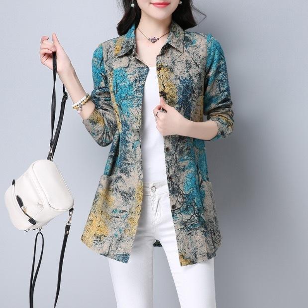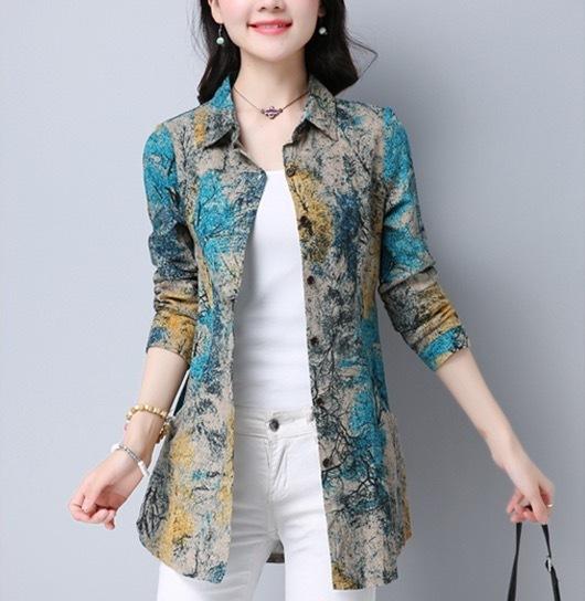グラデーションカラーの柄が特徴的な柄シャツです。