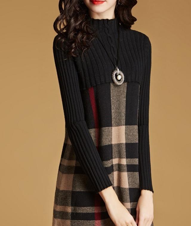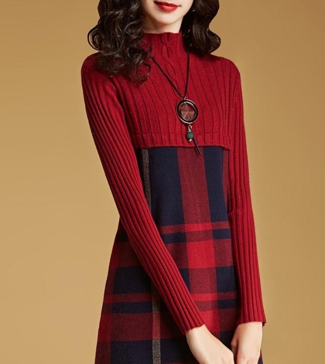 ワンピース ワンピドレス ショート ショート丈 袖あり 長袖 ハイネック 襟なし ストレート Iライン 切り替えデザイン ドッキング ニット 薄手 かわいい 大人可愛い シンプル 上品 おしゃれ アジアン エスニック エキゾチック 存在感 無地 柄 チェック柄 秋 冬 10代 20代 レディース 女性用 通勤 デート お出かけ 公園デビュー 女子会 休日 旅行 ホテル ガーデン レストラン 普段使い モテ 美脚 サイズ S M L XL 2XL 3XL 大きいサイズ 色展開 ブラック レッド ネイビー