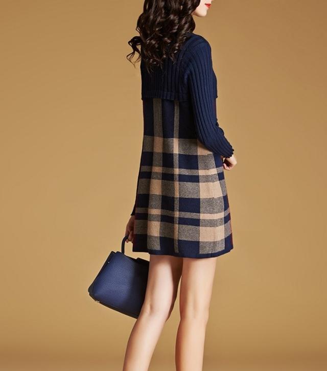 秋冬にぴったりな、チェック柄のニットワンピース。