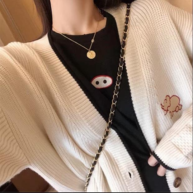 胸元の刺繍が可愛いガーリーなカーディガンです。