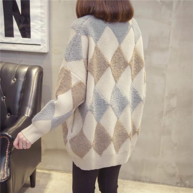 トップス カーディガン ロング ロング丈 袖あり 長袖 Vネック 襟なし もこもこ モコモコ ポケット 前開き ニット かわいい 大人可愛い シンプル カジュアル 大人 おしゃれ お洒落 レトロ アジアン エスニック エキゾチック 大人 ラフ 柄 ダイヤ柄 秋 冬 20代 30代 レディース