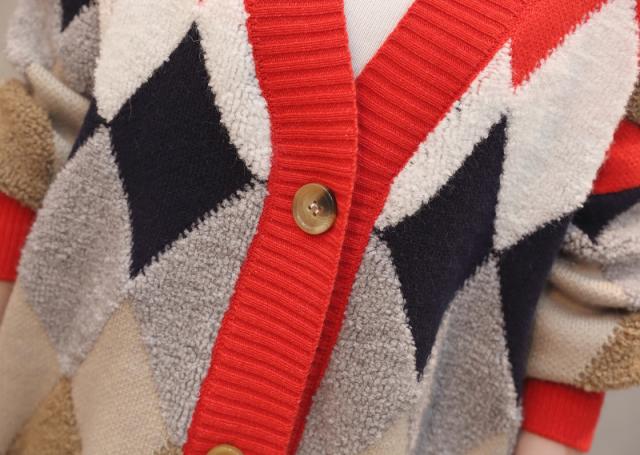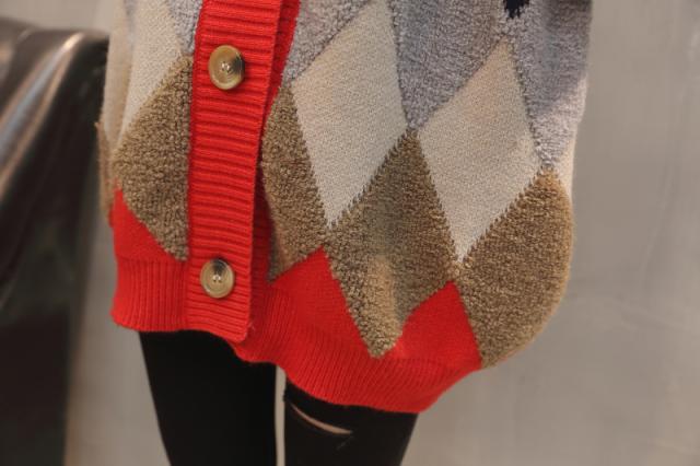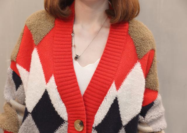 トップス カーディガン ロング ロング丈 袖あり 長袖 Vネック 襟なし もこもこ モコモコ ポケット 前開き ニット かわいい 大人可愛い シンプル カジュアル 大人 おしゃれ お洒落 レトロ アジアン エスニック エキゾチック 大人 ラフ 柄 ダイヤ柄 秋 冬 20代 30代 レディース 女性用 通勤 デート お出かけ 公園デビュー 女子会 お泊まり 休日 旅行 ホテル ガーデン レストラン 着回し 普段使い サイズ フリーサイズ 色展開 赤 レッド 灰色 グレー ネイビー 大人カラー アプリコット