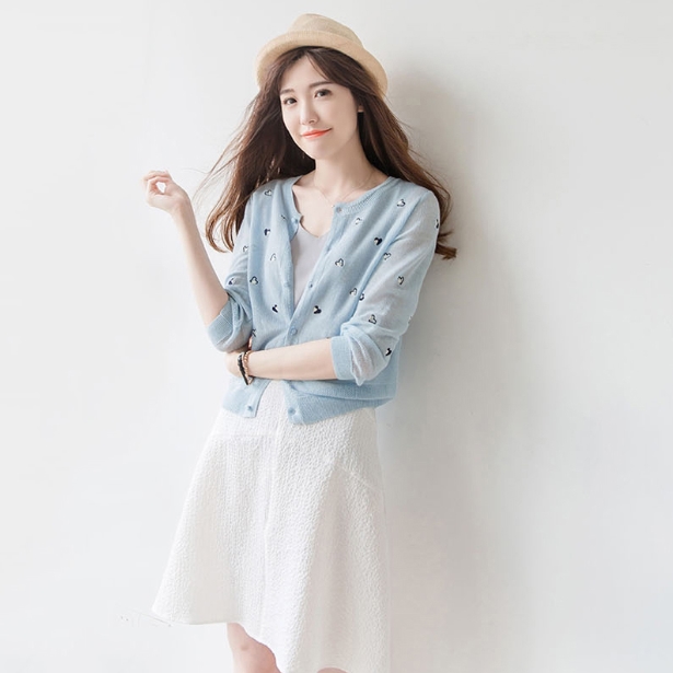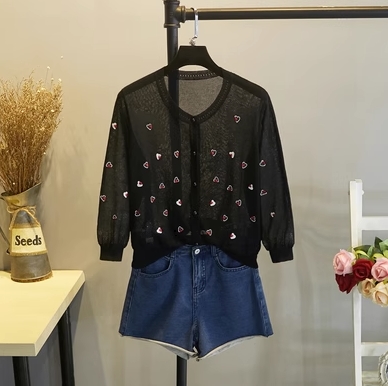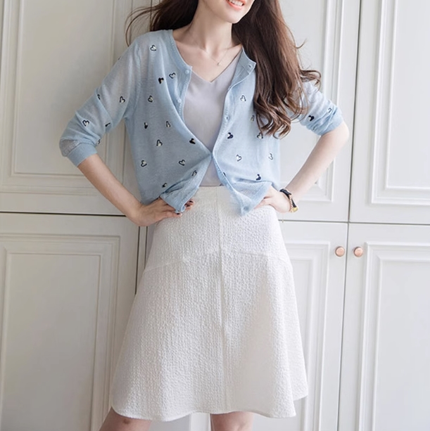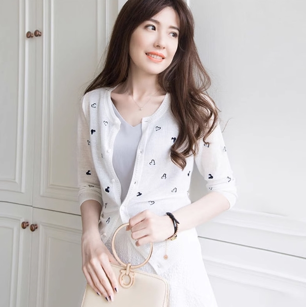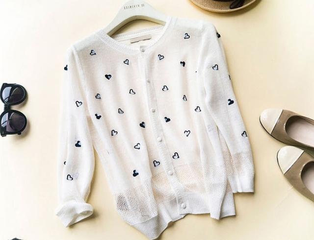 さりげないハート柄が大人可愛い、サマーニットカーディガン。