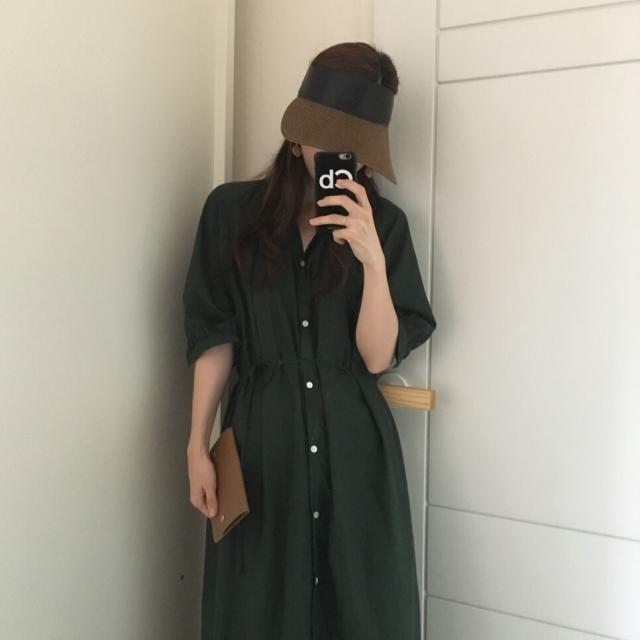 すらっとしたシルエットのロングシャツワンピースです。