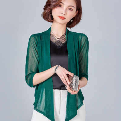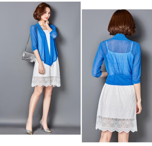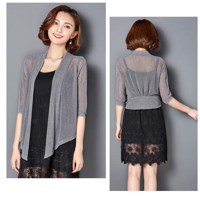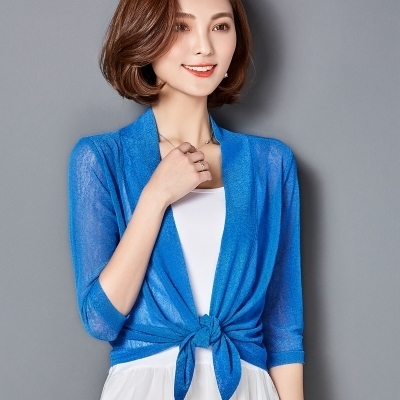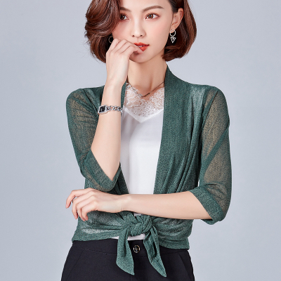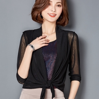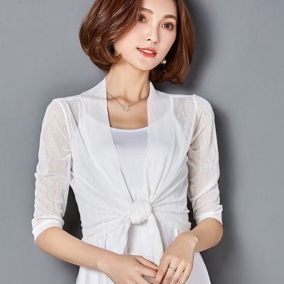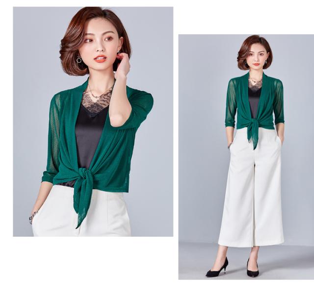 カーディガン ショール 羽織り ショート丈 7分袖 七分袖 透け感 シースルー 前結び メッシュ きれいめ シンプル おしゃれ お洒落 エキゾチック 大人可愛い 大人女子 こなれ感 無地 春 夏 秋 10代 20代 30代 40代 50代 60代 リゾート 海 プール ホテル ガーデン レストラン