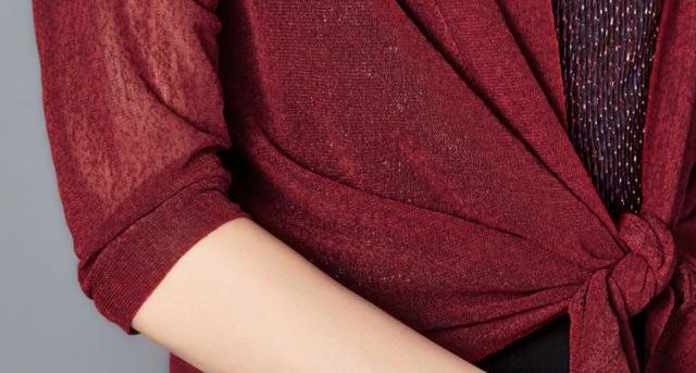 透け感がありながらも、きれいめで大人っぽさも感じられるデザイン前結びカーディガンです。