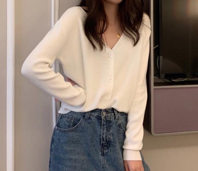 トップス デート カーディガン 上着 白トップス ショート ショート丈 ミディアム丈 袖あり 長袖 ボリューム袖 フレアスリーブ フレンチスリーブ ホルンスリーブ 萌袖 Vネック 襟なし フレア セミフレア 細身 ストレート ワイド Iライン スマート 前開き 伸縮性 薄手 かわいい