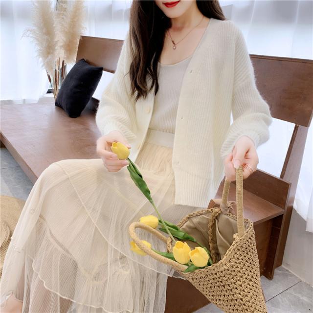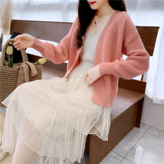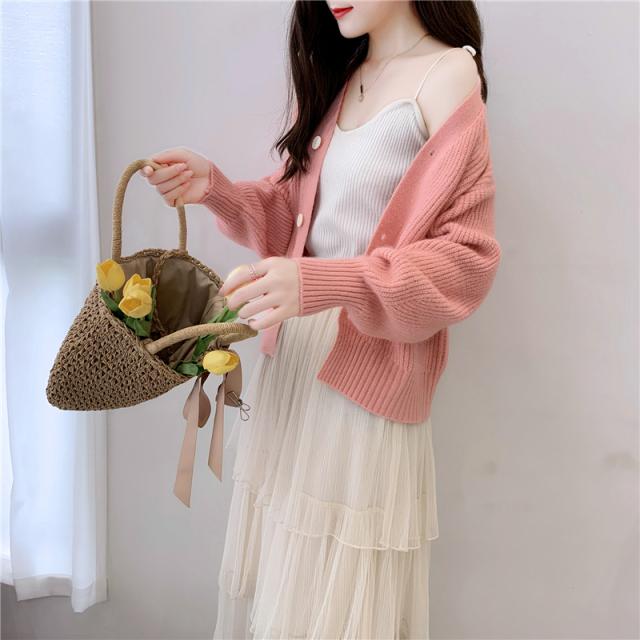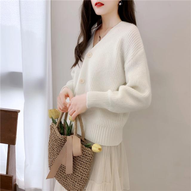 ドロップショルダー ショート ニット カーディガン トップス ショート丈 袖あり 長袖 ボリューム袖 萌袖 Vネック 襟なし ふわふわ リブ 前開き リブニット 編み込み かわいい 大人可愛い きれいめ シンプル カジュアル 大人 上品 おしゃれ 大人女子 こなれ感 ラフ ラブリー キュート モード系 モダン 抜け感 無地 秋 冬 10代 20代 30代 40代 50代 60代 OL 通勤 学生 通学 デート お出かけ 休日 着回し 普段使い 重ね着 暖かい モテ トレンド 流行 インスタ映え 8色展開