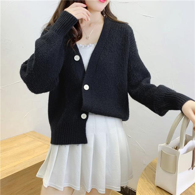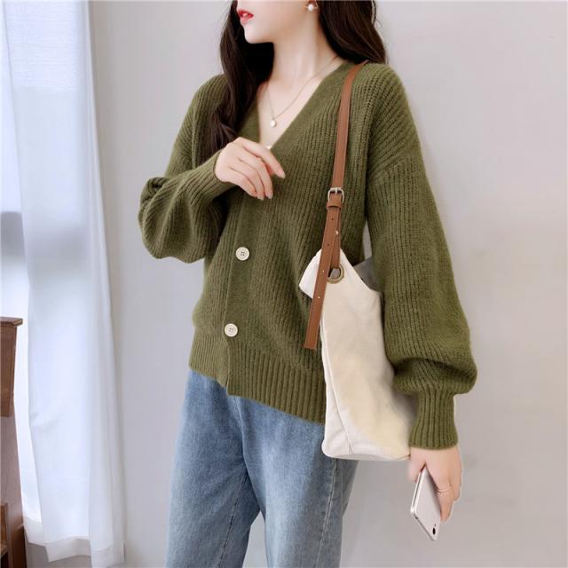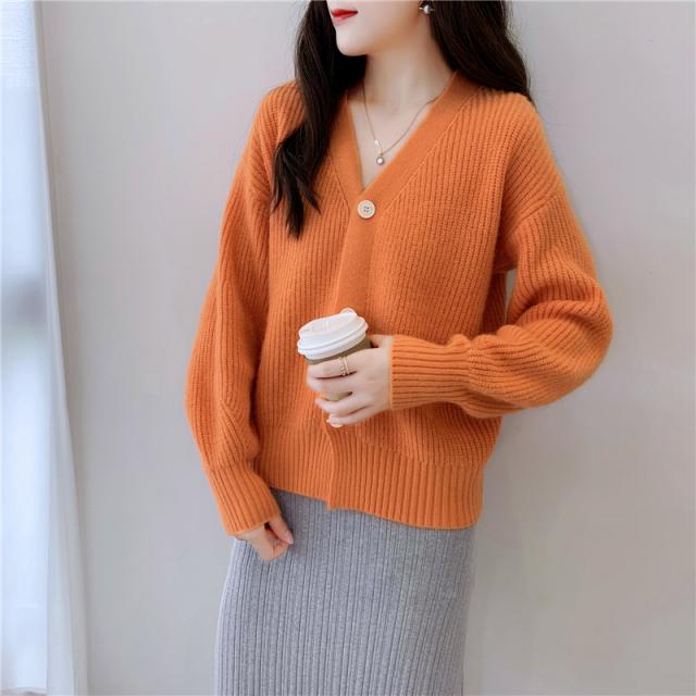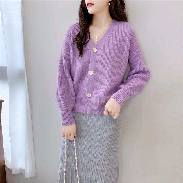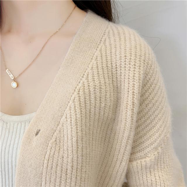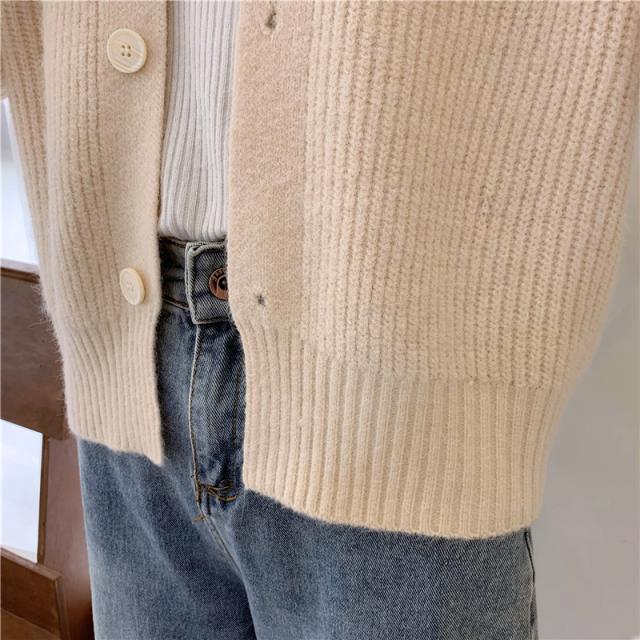 ざっくりとしたローゲージで編んだインナー選ばない深めのVネックカーディガン。