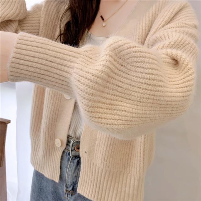ドロップショルダー ショート ニット カーディガン トップス ショート丈 袖あり 長袖 ボリューム袖 萌袖 Vネック 襟なし ふわふわ リブ 前開き リブニット 編み込み かわいい 大人可愛い きれいめ シンプル カジュアル 大人 上品 おしゃれ 大人女子 こなれ感 ラフ ラブリー