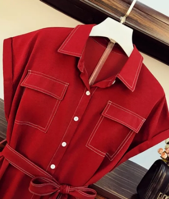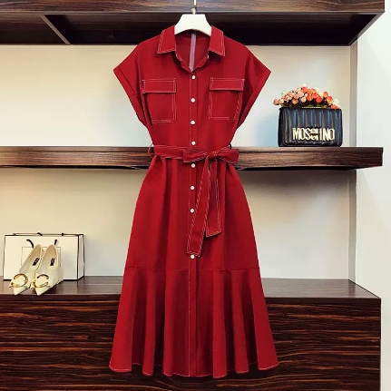 ワンピース シャツワンピース ワンピドレス 膝下 ロング ロング丈 袖あり 半袖 襟付き フレア Aライン ウエストリボン ポケット ハイウエスト 前開き ポリエステル かわいい 大人可愛い シンプル カジュアル 大人 おしゃれ お洒落 レトロ アジアン エスニック ラフ 無地 夏 10代 20代 レディース 女性用 通勤 デート お出かけ 公園デビュー 女子会 休日 リゾート 旅行 海 ホテル ガーデン レストラン 普段使い 楽ちん サイズ L XL 2XL 3XL 4XL 大きいサイズ 色展開 レッド