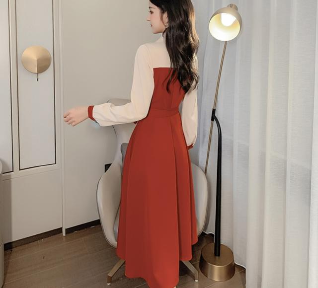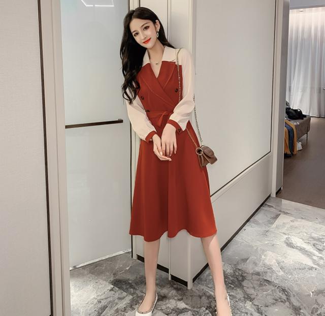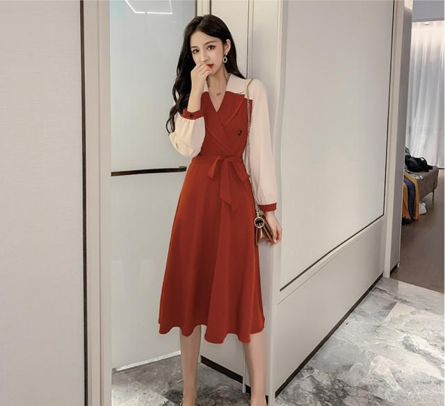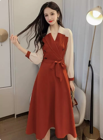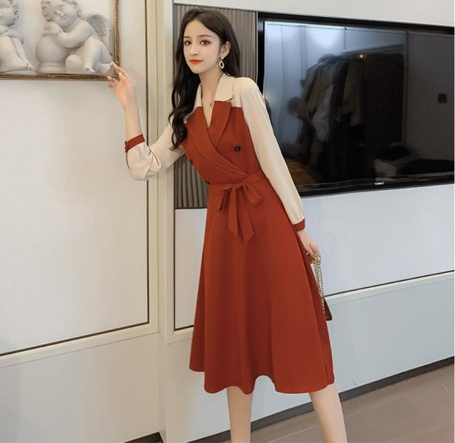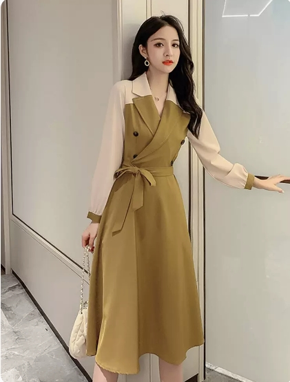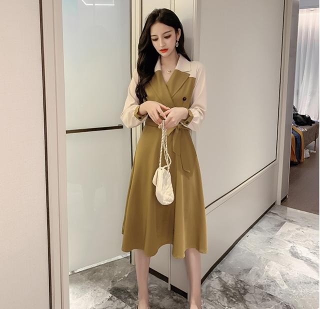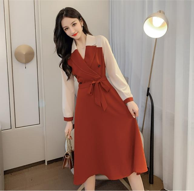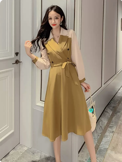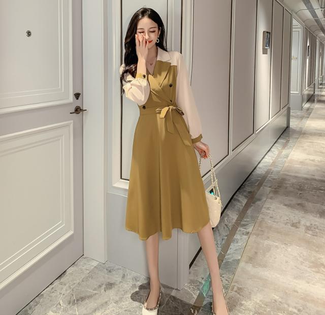 ワンピース トレンチコート コートワンピース 膝下 ミディアム丈 袖あり 長袖 Vネック 襟付き フレア Aライン ウエストマーク ウエストリボン ハイウエスト 大人 上品 おしゃれ お洒落 かっこいい 大人可愛い 大人女子 個性的 エレガント 存在感 バイカラー 春 秋 入学式 入園式 卒業式 卒園式 謝恩会 参観日 オケージョン 20代 30代 40代 ママ OL 通勤 学生 通学 デート お出かけ ホテル レストラン インスタ映え S M L XL 色展開 赤 レッド 黄色 ベージュ 春カラー