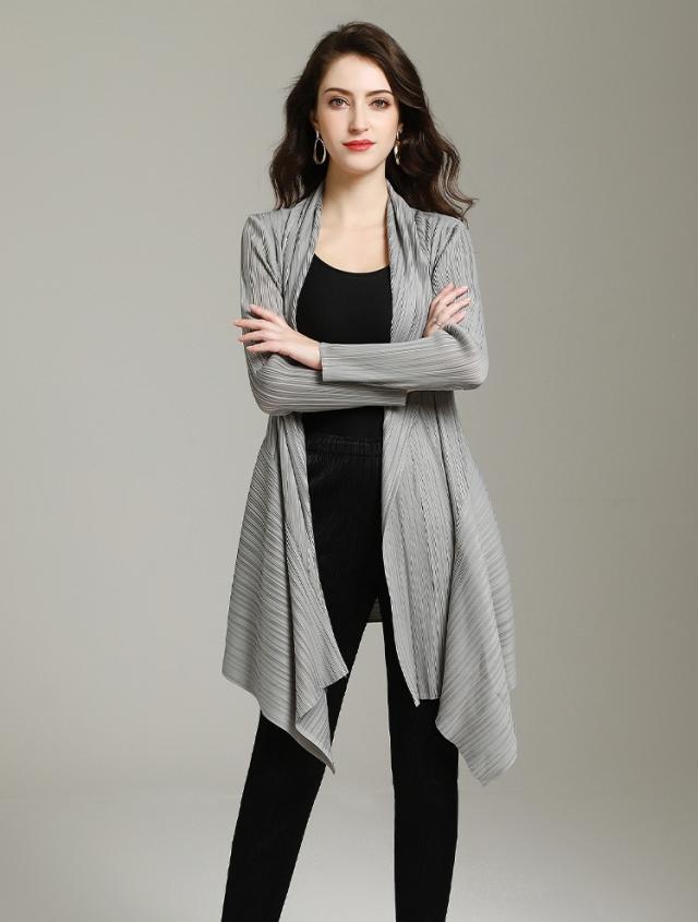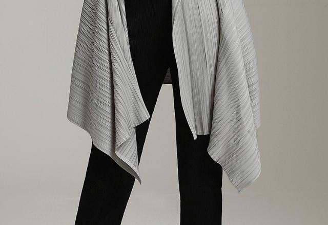 ストレッチ性に優れた、凹凸感のあるランダムテレコを使用したトッパーカーディガンです。