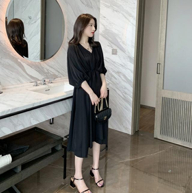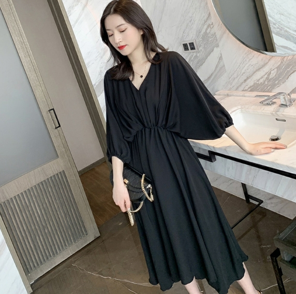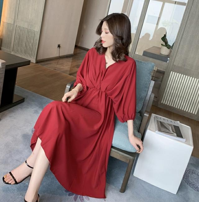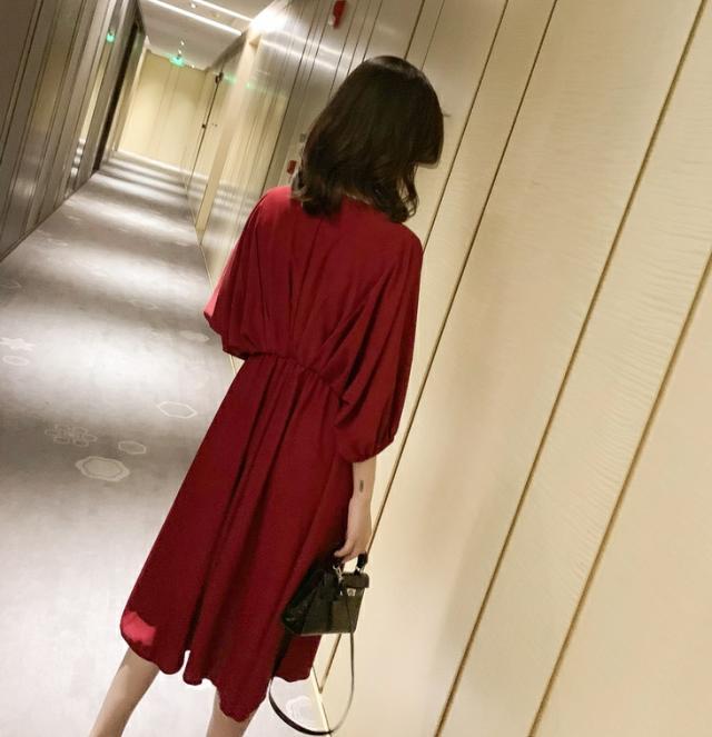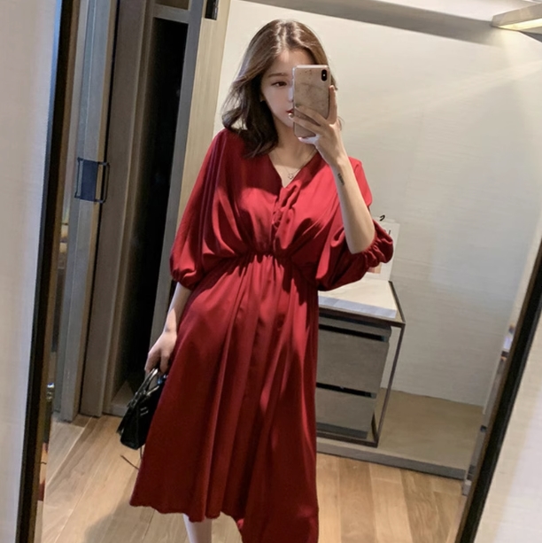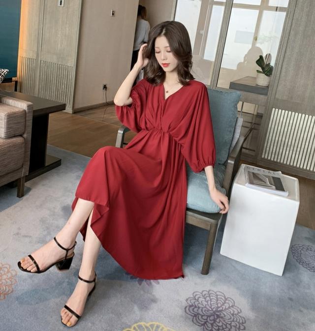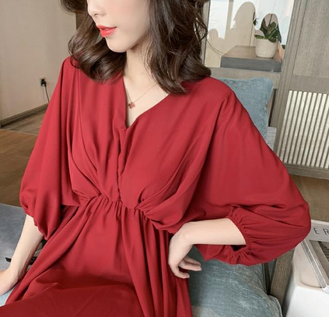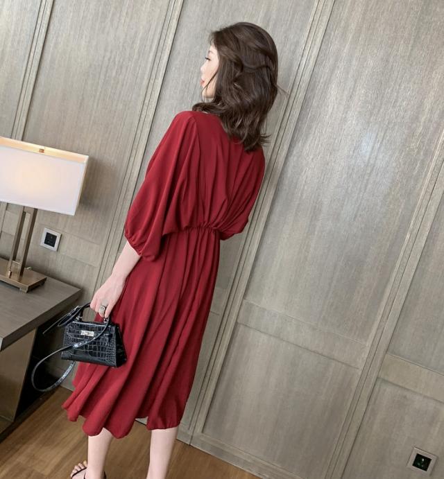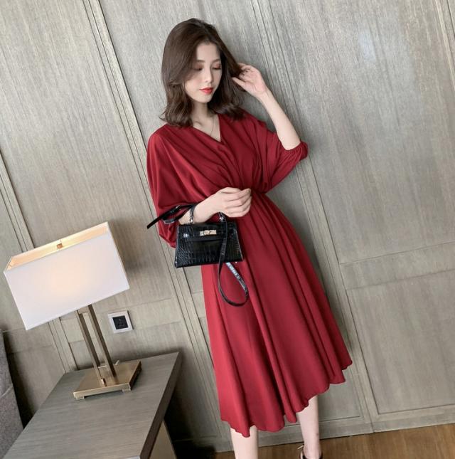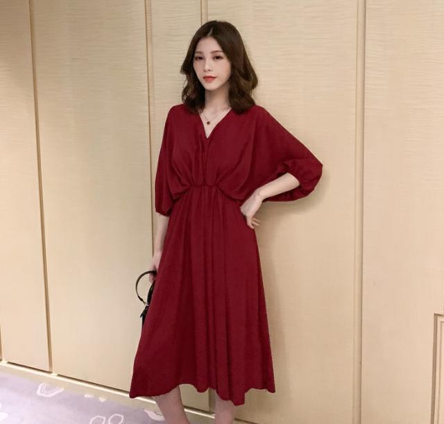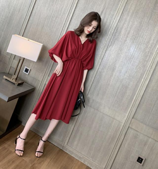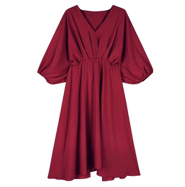 ワンピース ワンピドレス 膝下 ロング ロング丈 袖あり 5分袖 五分袖 ドルマンスリーブ Vネック 襟なし セミフレア Aライン ハイウエスト かわいい 大人可愛い きれいめ シンプル カジュアル 上品 おしゃれ アジアン エスニック エキゾチック セクシー エレガント 無地 夏 秋 20代 30代 レディース 女性用 通勤 デート お出かけ 公園デビュー 女子会 休日 リゾート 旅行 海 レストラン 普段使い 楽ちん サイズ M L XL 2XL 3XL 4XL 大きいサイズ 色展開 ブラック レッド