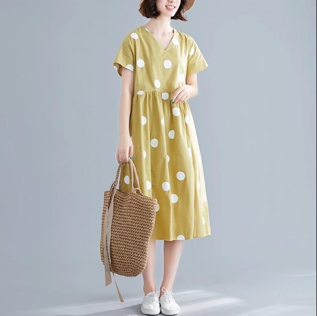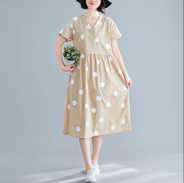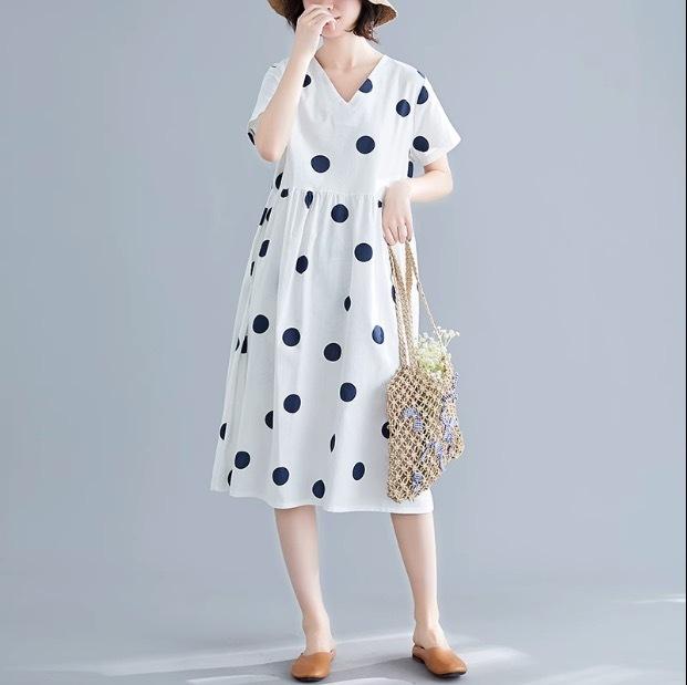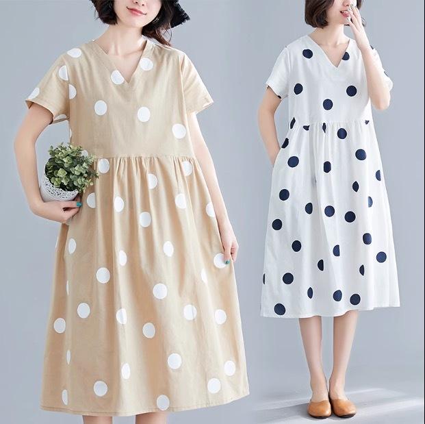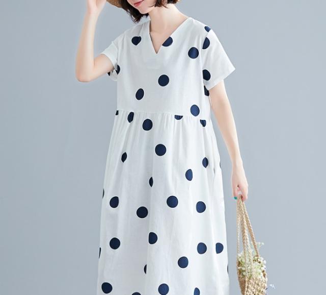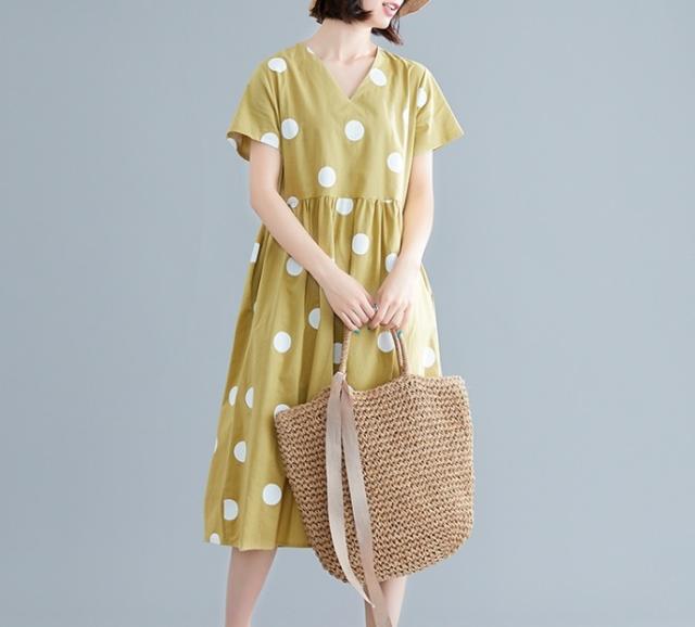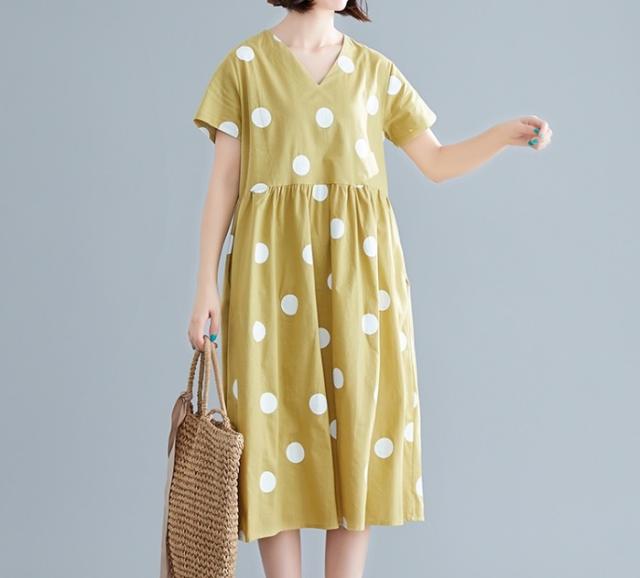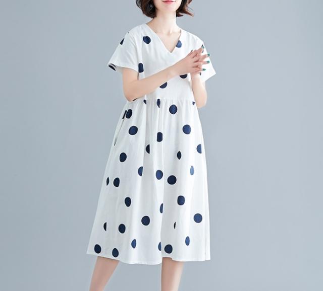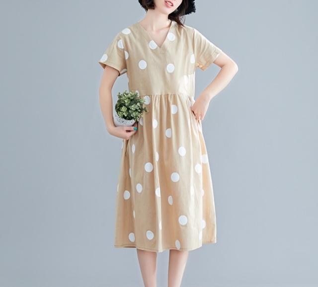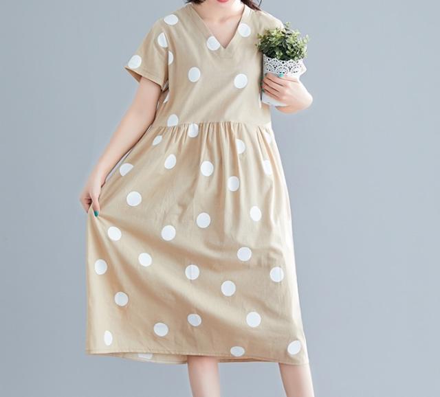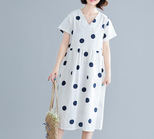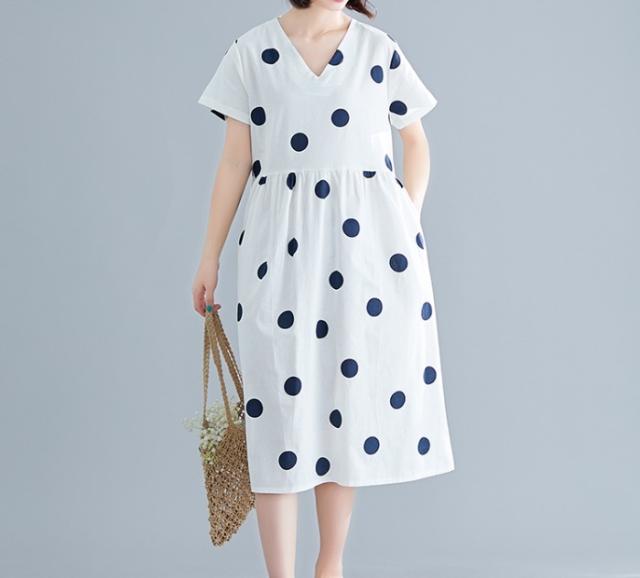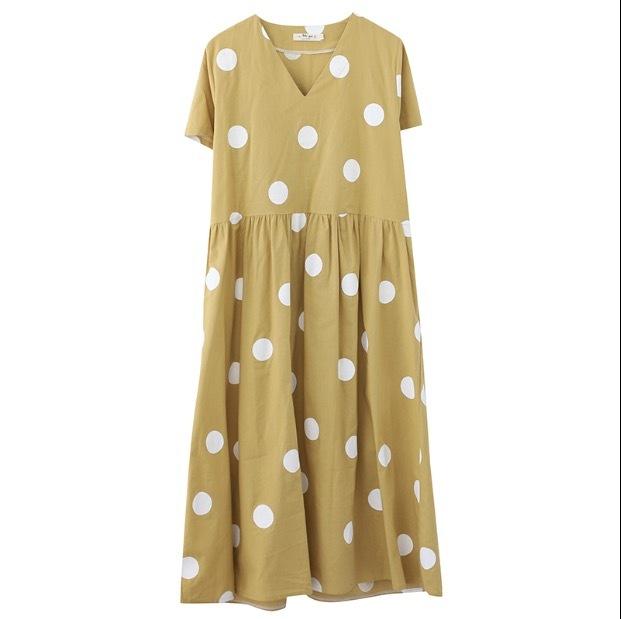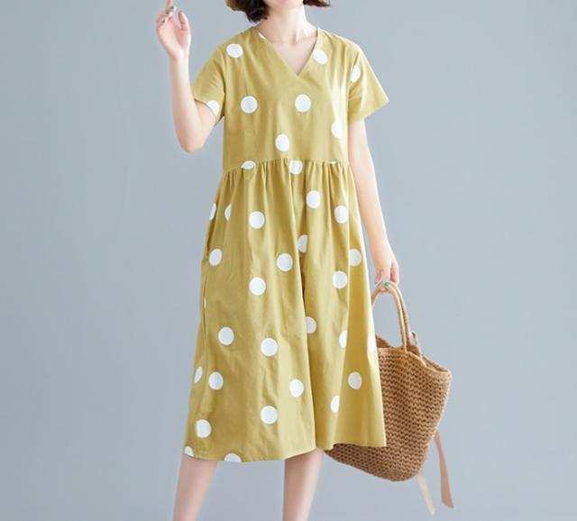 大きなドットが大人可愛い膝丈ワンピースです。