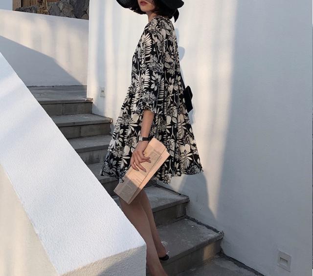 ワンピース デート フレアワンピース ワンピドレス ミニ ミニ丈 ショート ショート丈 膝上 ミディアム丈 袖あり 7分袖 七分袖 長袖 ボリューム袖 パフスリーブ フレアスリーブ Vネック 襟なし フレア セミフレア 細身 ストレート Aライン 切り替えデザイン スマート バックリボン 伸縮性 かわいい 大人可愛い きれいめ シンプル カジュアル 上品 おしゃれ お洒落 レトロ 大人女子 こなれ感 キュート ガーリー 個性的 モード系 エレガント モダン 主役級 存在感 抜け感 柄 花柄 フラワー
