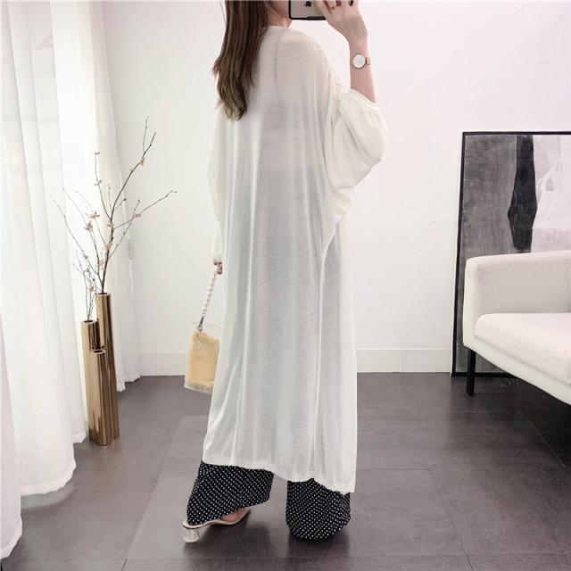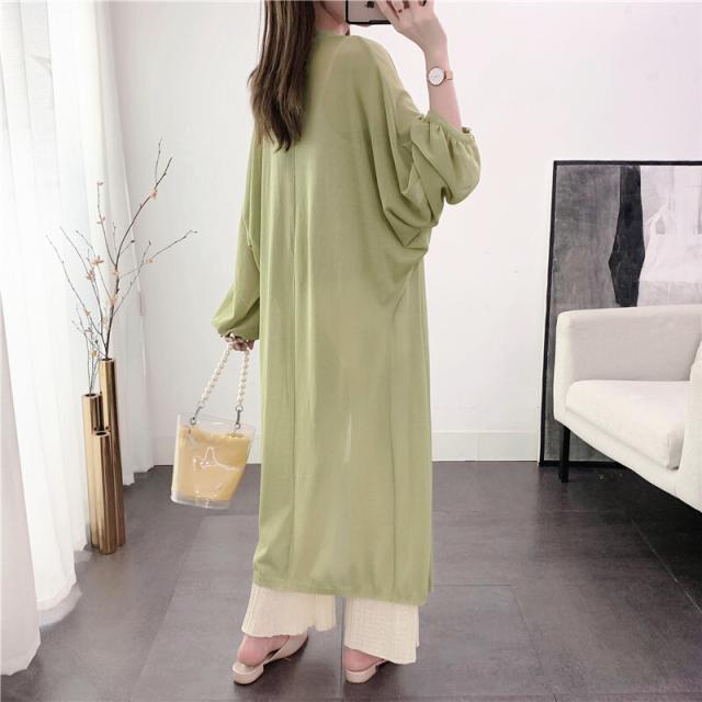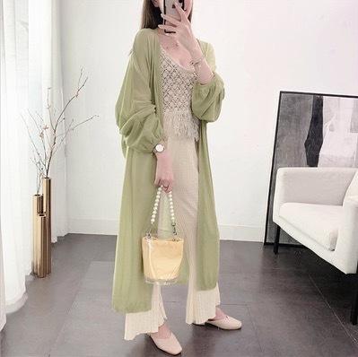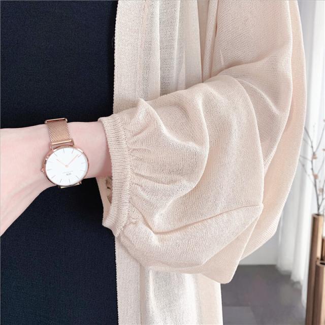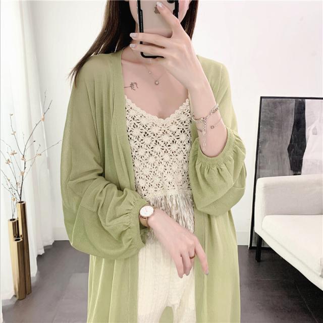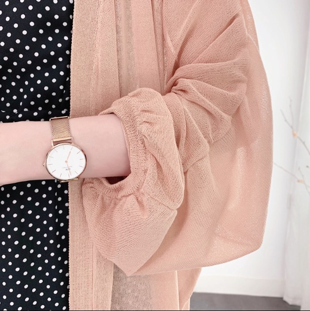 トップス カーディガン 上着 白トップス ロング ロング丈 ミディアム丈 袖あり 長袖 ボリューム袖 フレアスリーブ フレンチスリーブ 萌袖 襟なし フレア セミフレア 細身 ストレート ワイド Iライン スマート 前開き 透け感 シースルー 伸縮性 薄手 かわいい 大人可愛い