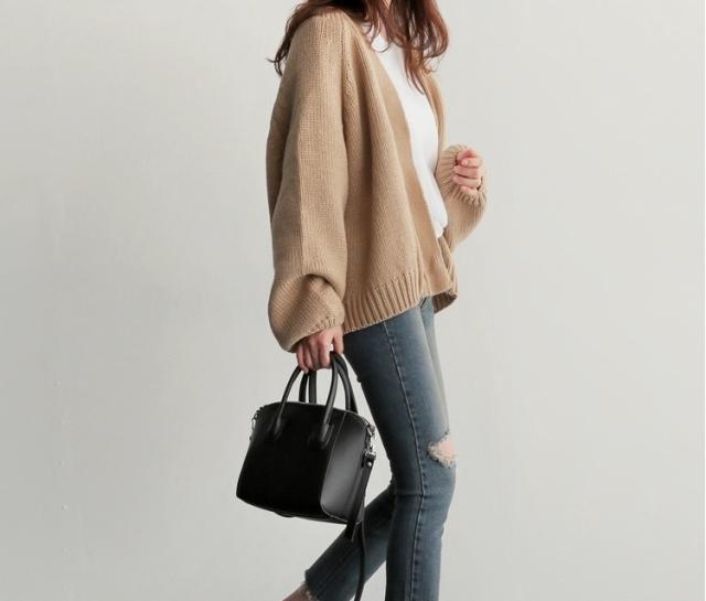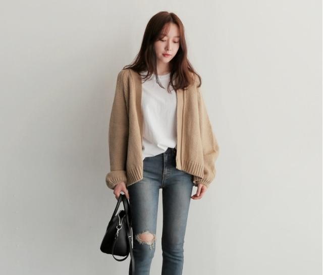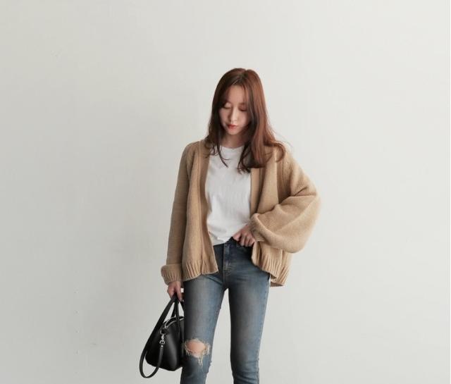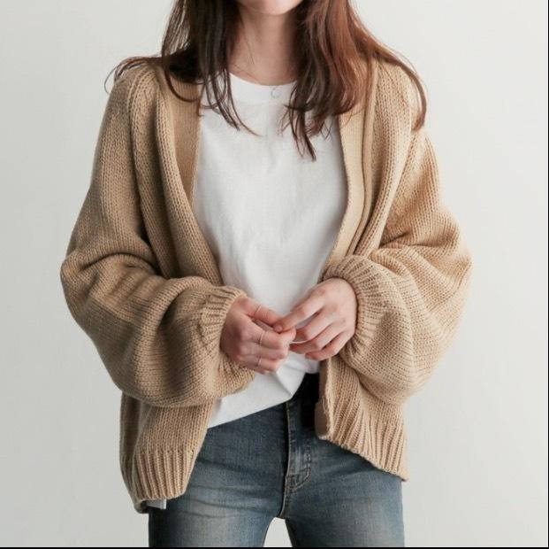ボリュームのあるラグランスリーブが女性らしさを演出してくれる長袖カーディガンです。