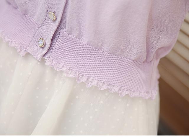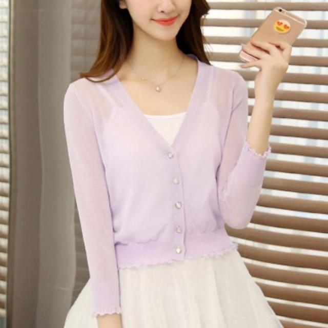 ガーリーな透け感のあるさりげないフリルがポイントのカーディガン