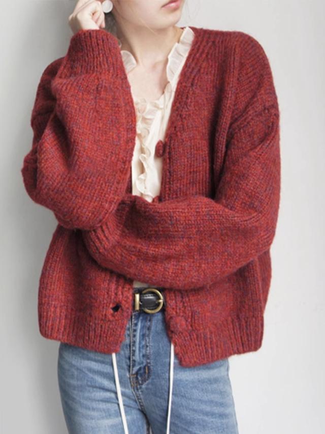 ざっくり 大人 ニット カーディガン トップス 袖あり 長袖 ボリューム袖 ドロップショルダー 萌袖 Vネック 襟なし 前開き 編み込み かわいい 大人可愛い きれいめ シンプル カジュアル 上品 おしゃれ 大人女子 こなれ感 ラフ ラブリー モード系 存在感 抜け感 無地 秋 冬 10代 20代 30代 40代 50代 60代 レディース 学生 通学 デート お出かけ 女子会 休日 着回し 普段使い 重ね着 楽ちん モテ 体系カバー トレンド 流行 インスタ映え S M L ゆったり ゆる サイズ