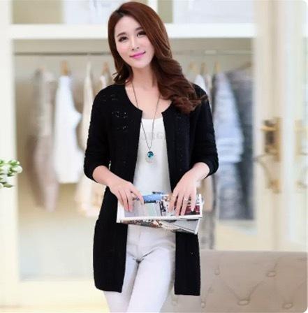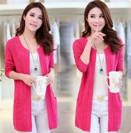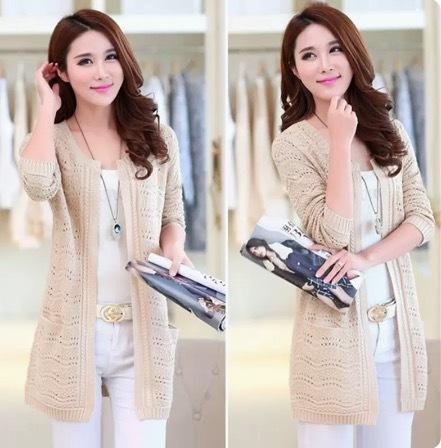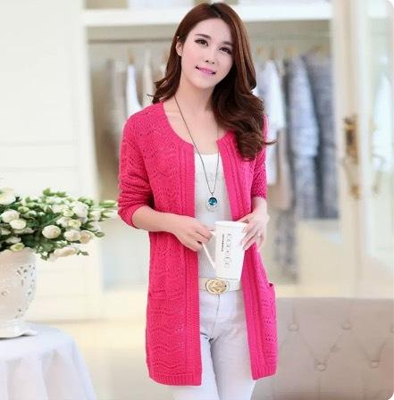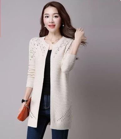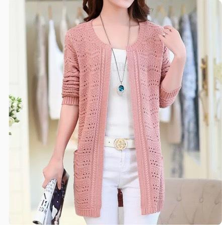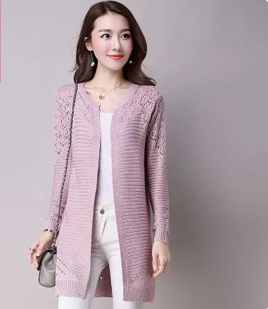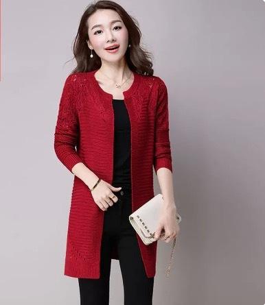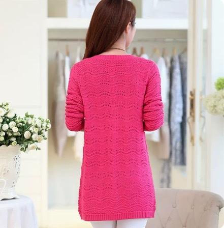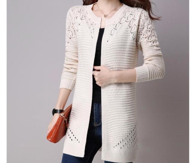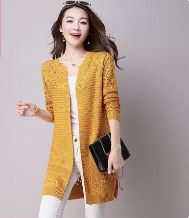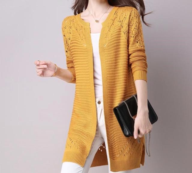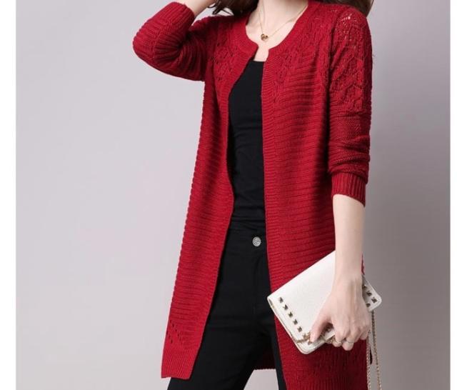 カラーバリエーション豊かな編み込みデザインのミドル丈カーディガンです。