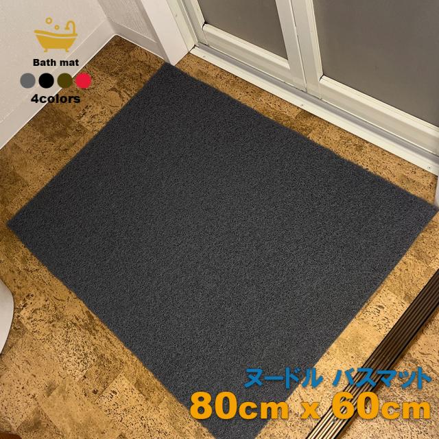 PVC ヌードル バスマット 80cm×60cm フロアマット マット ブラック グレー ブラウン レッド シリコンラバー シリコンゴム 吸水マット 撥水マット 敷物 お風呂マット 風呂マット 四角 スクエア あみあみ 黒 茶色 赤 バスルーム シャワールーム LB-334 区分60S