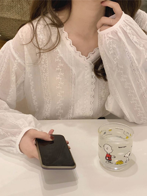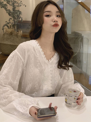 トップス シャツ ブラウス 袖あり 長袖 Vネック かわいい 大人可愛い シンプル カジュアル 大人 おしゃれ お洒落 レトロ 大人可愛い 大人女子 こなれ感 ラブリー キュート ガーリー 無地 春 夏 10代 20代 30代 40代 レディース 女性用 学生 通学 デート お出かけ 女子会 休日 旅行 高原 ガーデン レストラン 着回し 普段使い 韓国 韓国系 オルチャン ファッション コーデ スタイル 体系カバー フリーサイズ ワンカラー 白 ホワイト