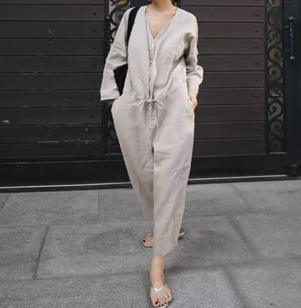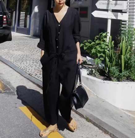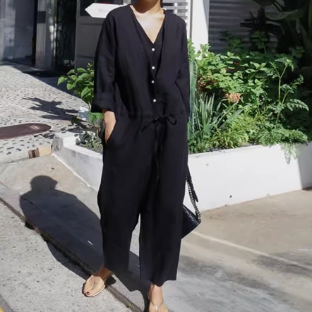 トレンド感と上品さを兼ね備えたこの一着は、幅広い年齢層の女性におすすめです。シンプルなデザインなので、どんなアクセサリーや小物とも相性抜群です。自分らしいスタイルを楽しむために、ぜひこのオールインワン パンツスーツを取り入れてみてください。