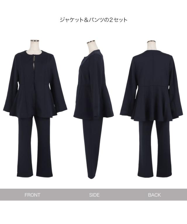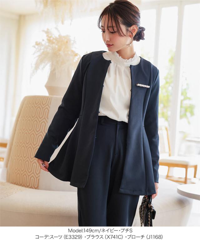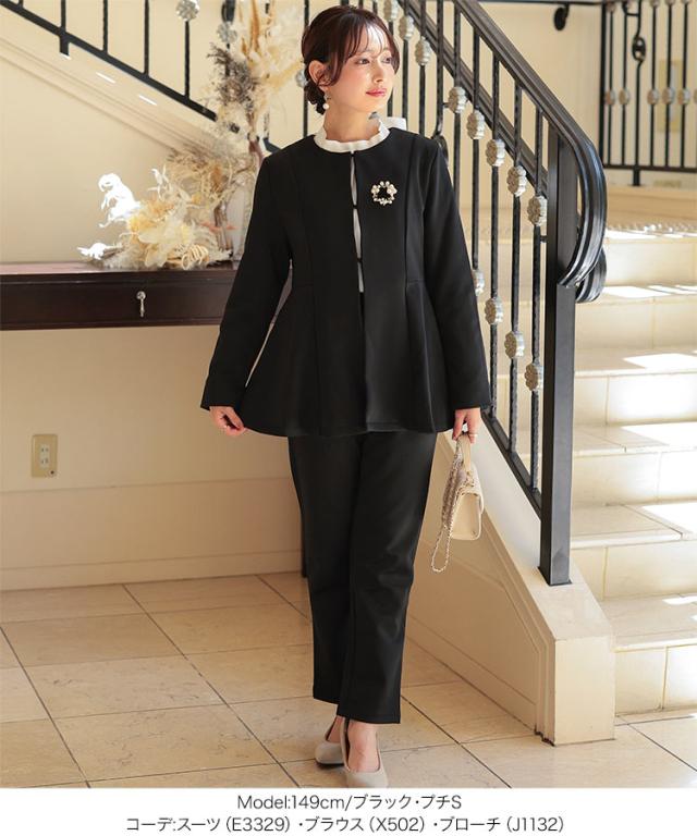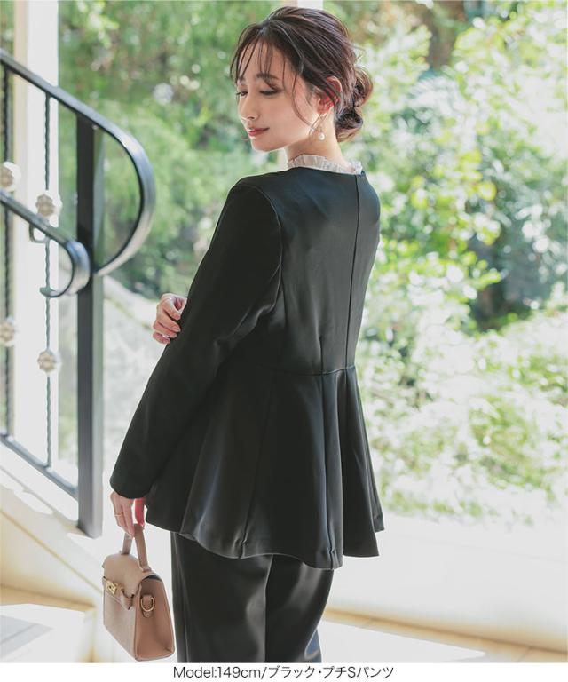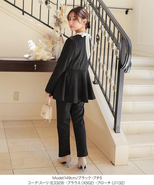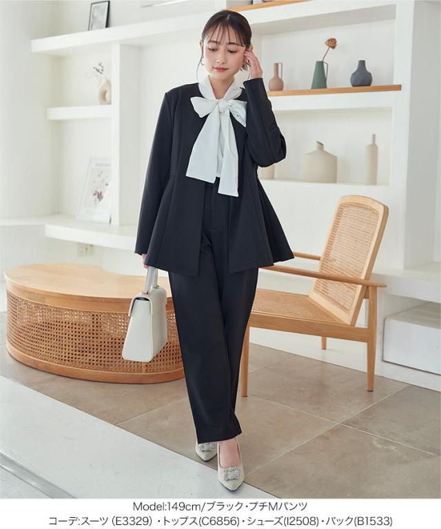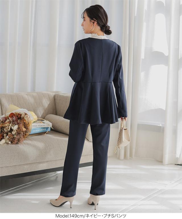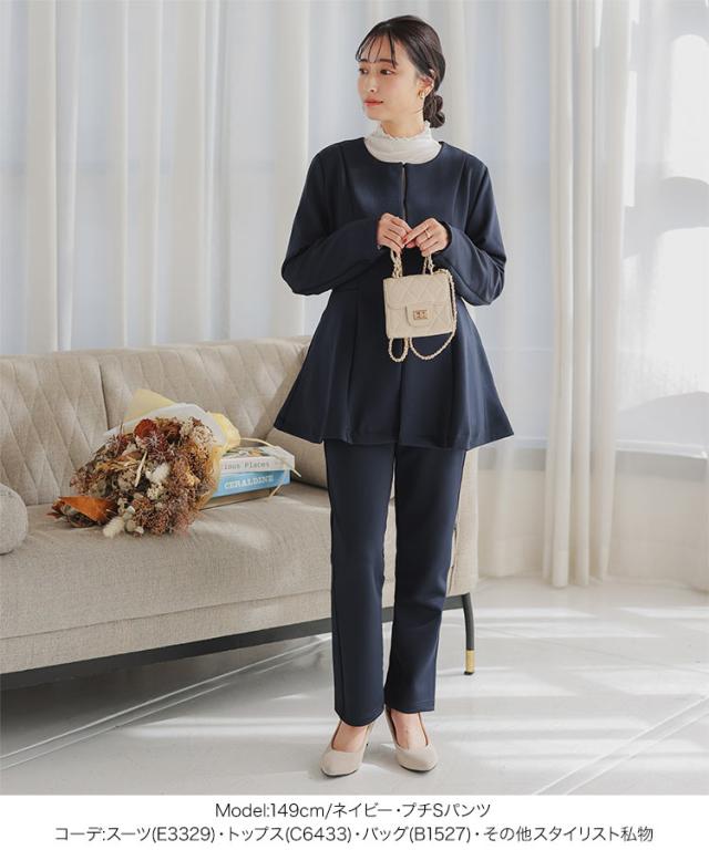 [ セレモニー ] [ Petitle / プチレ ] ペプラムジャケットセットアップ E3329 レディース オフィスカジュアル 小柄 低身長 プチサイズ 学校行事 低身長さんサイズあり オフィス セレモニー スーツ セレモニースーツ